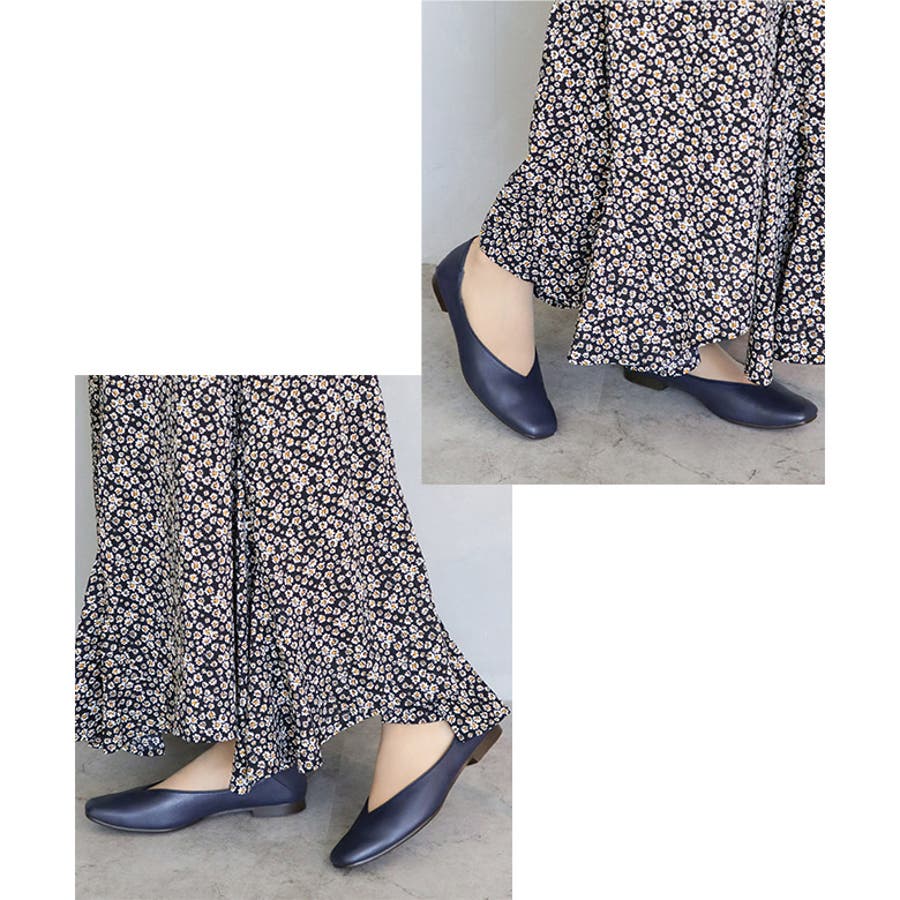 商品説明文 | 大人気のスクエアトゥのVカットパンプスです。 当店大人気の木型を使用した柔らかVカットバレエです。 今年もカットラインで魅せる靴が大人気です。 足が美しく見えるラインです。 本体の素材は高級なストレッチ人工皮革を採用しております。 木型は上品なスクエアトゥだから落ち着いた印象になります。 かかとには芯が入っておらず、柔らかいのでかかとを踏んで歩く事も可能です。 足全体を優しく包み込んでくれます。 底は1.5cmヒールのクレープソール採用しているので長時間歩いても疲れません。 ウラ材はバイオライナーという機能素材を採用しています。 抗菌、制菌効果のあるソフトな素材です。 また、中敷きも制菌機能を備えた特殊な素材を採用しています。 中敷きの素材はもっちりしており肌さわりは最高です。 中敷の全面に4mmの低反発クッションを敷いているので、足当たりは最高です。 底は屈曲性が良く軽量な材質を採用しています。 いろんなシーンで活躍出来るスクエアトゥのパンプスです。 秋から春まで活躍出来ます。 靴全体が柔らかでふわふわです。 日本製ならではの幸せな履き心地を是非お試しくださいませ。 |