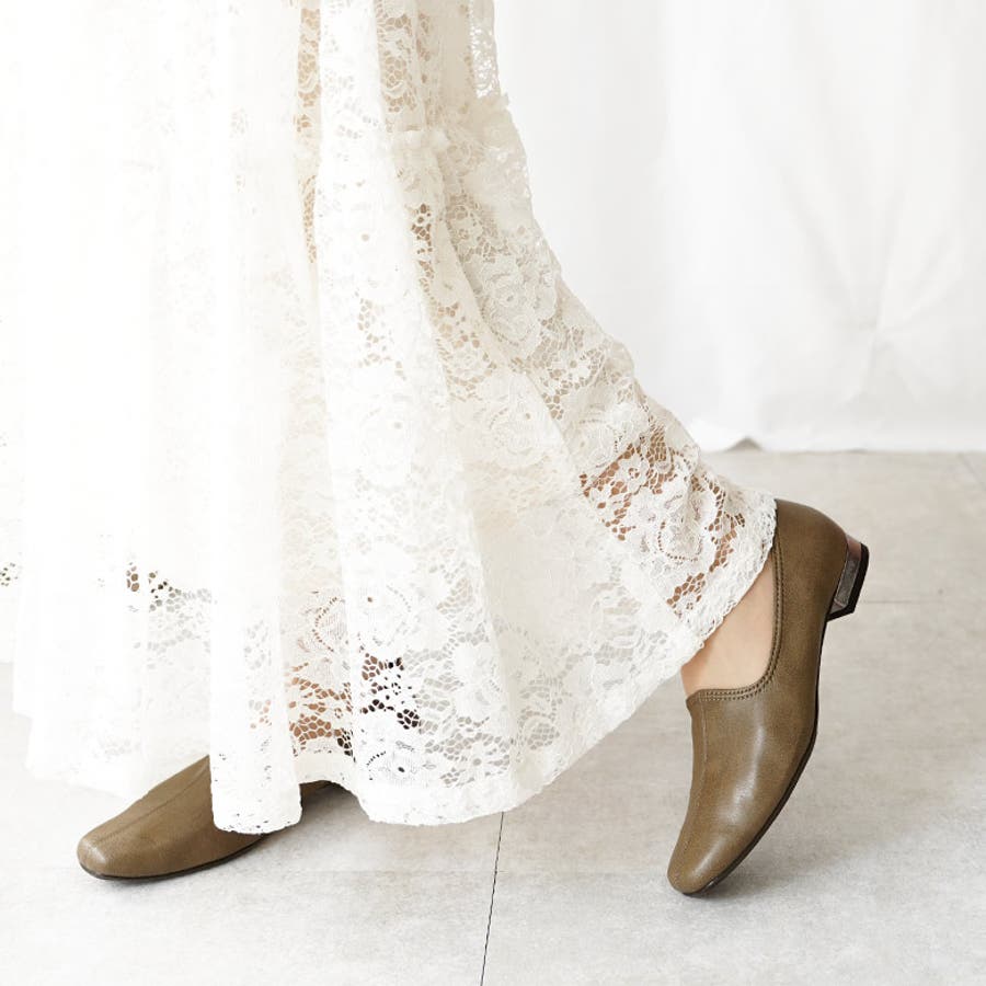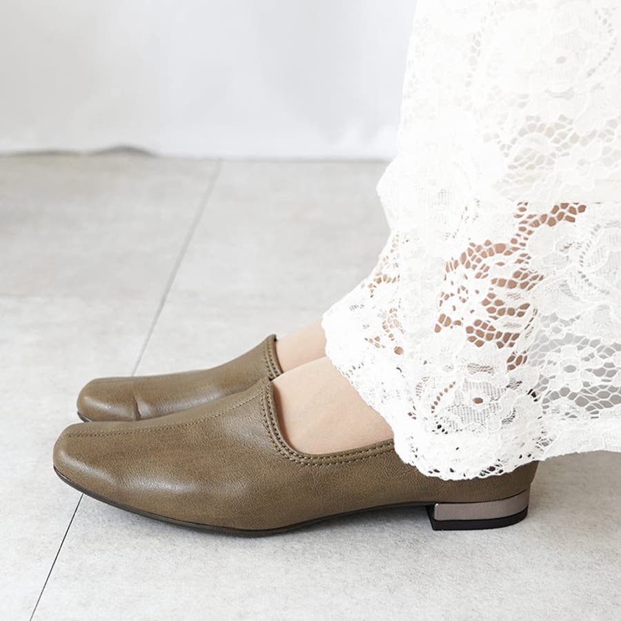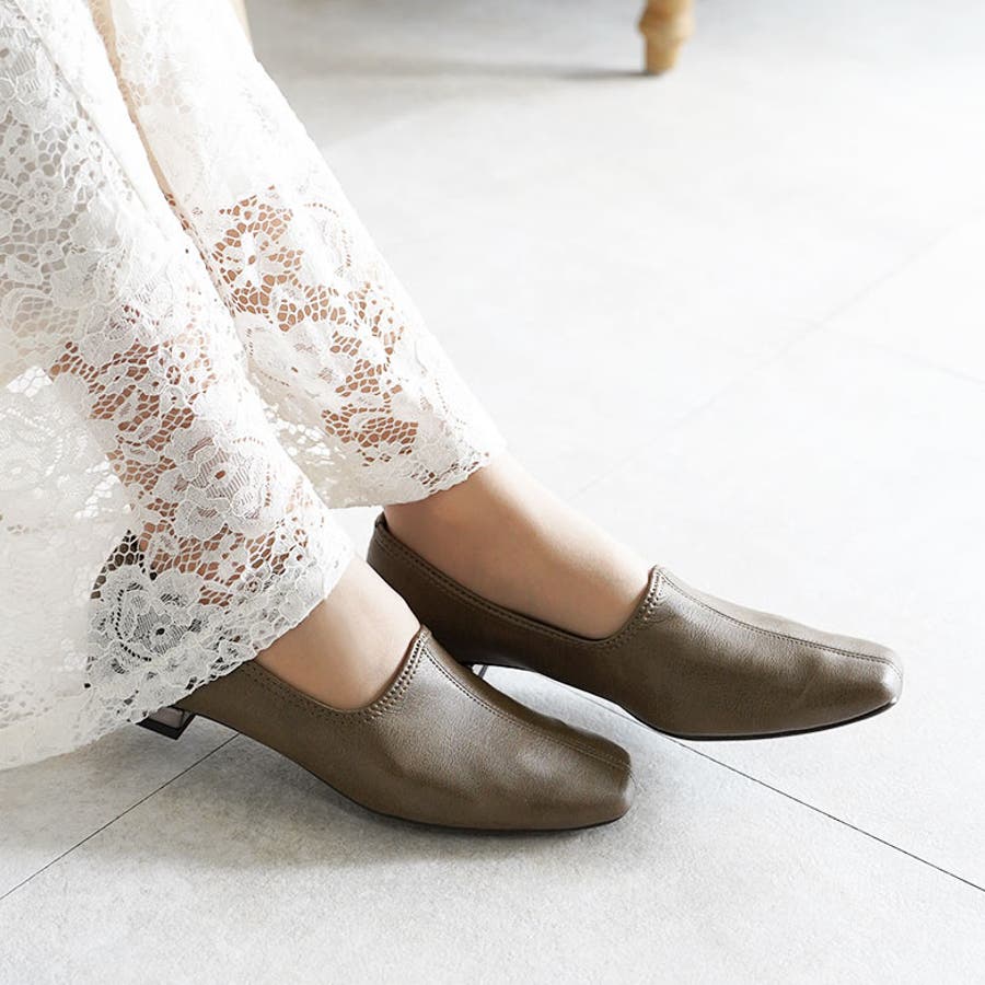 日本製 ストレッチ シンプル スリッポン ローヒール 幅広