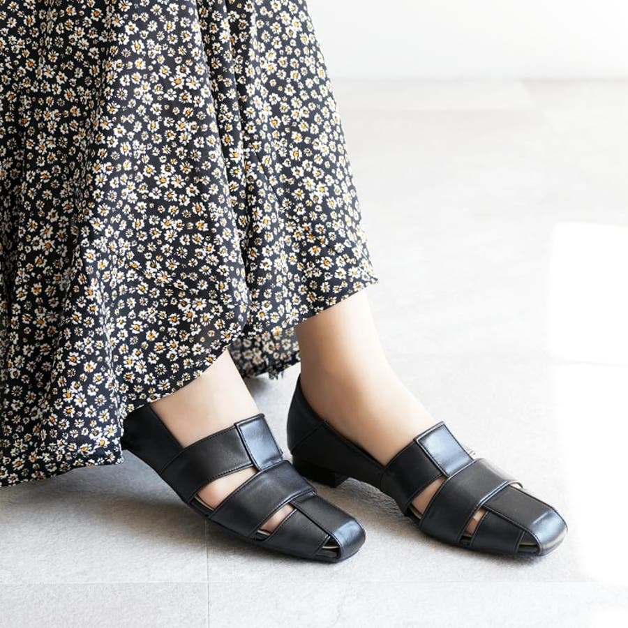スクエアトゥのぺたんこパンプスです。