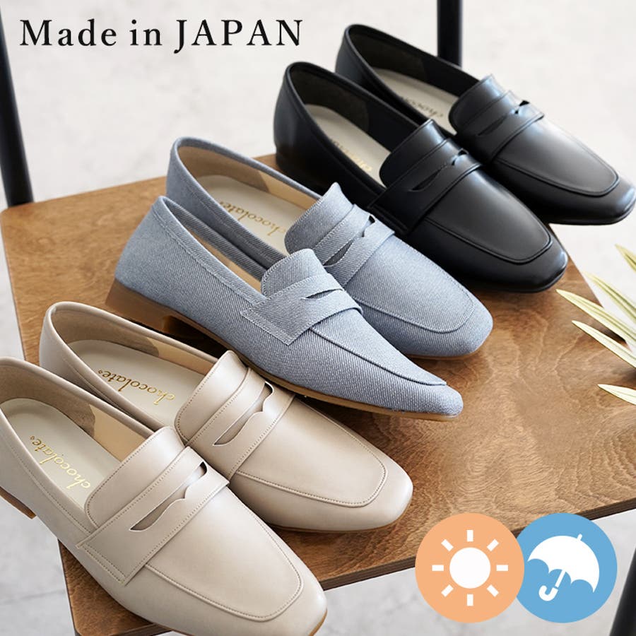 日本製 スクエアトゥ コインローファー 晴雨兼用 レイン