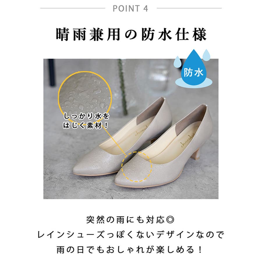 晴雨兼用 日本製 レイン ポインテッド パンプス 6cmヒール 走れるパンプス