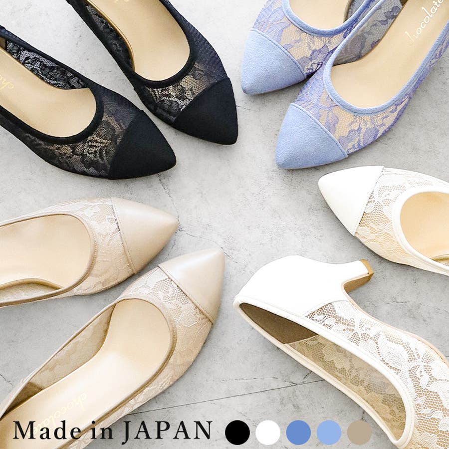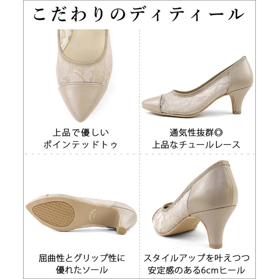 日本製 ポインテッド チュールパンプス 6cmヒール 花柄 水玉 合皮