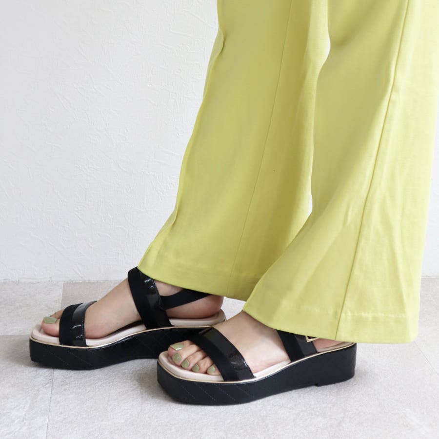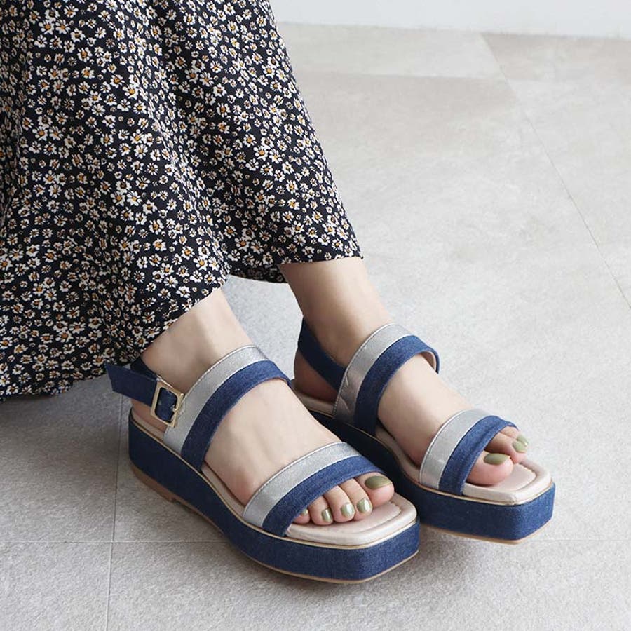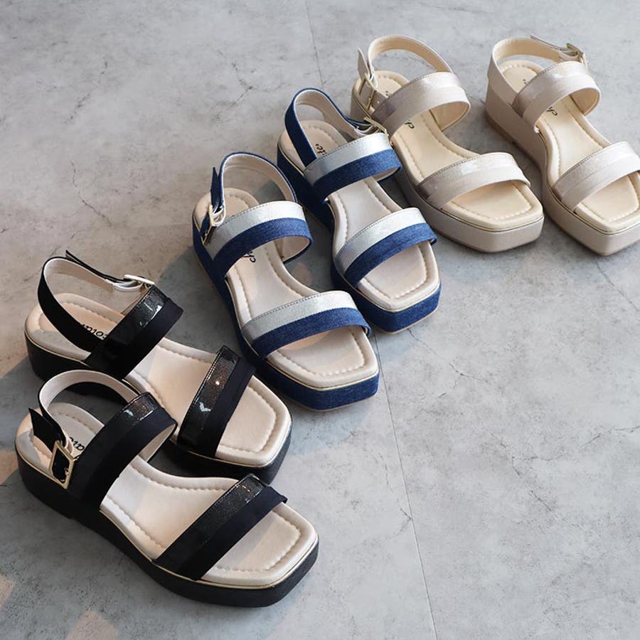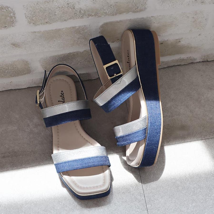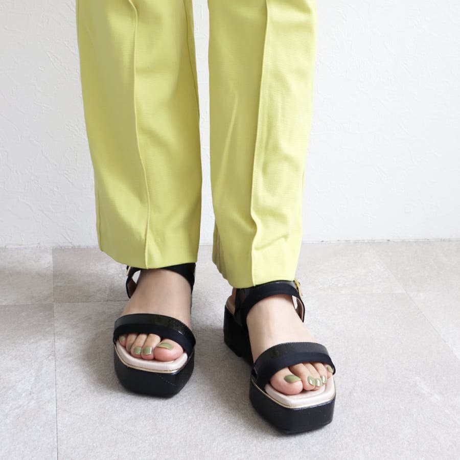 日本製 バイカラープラットフォームサンダル