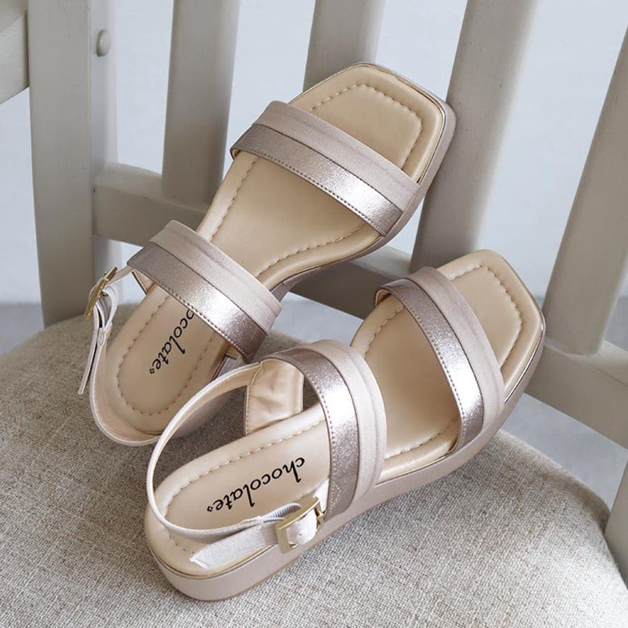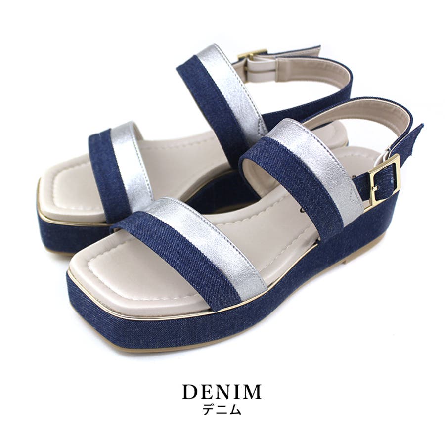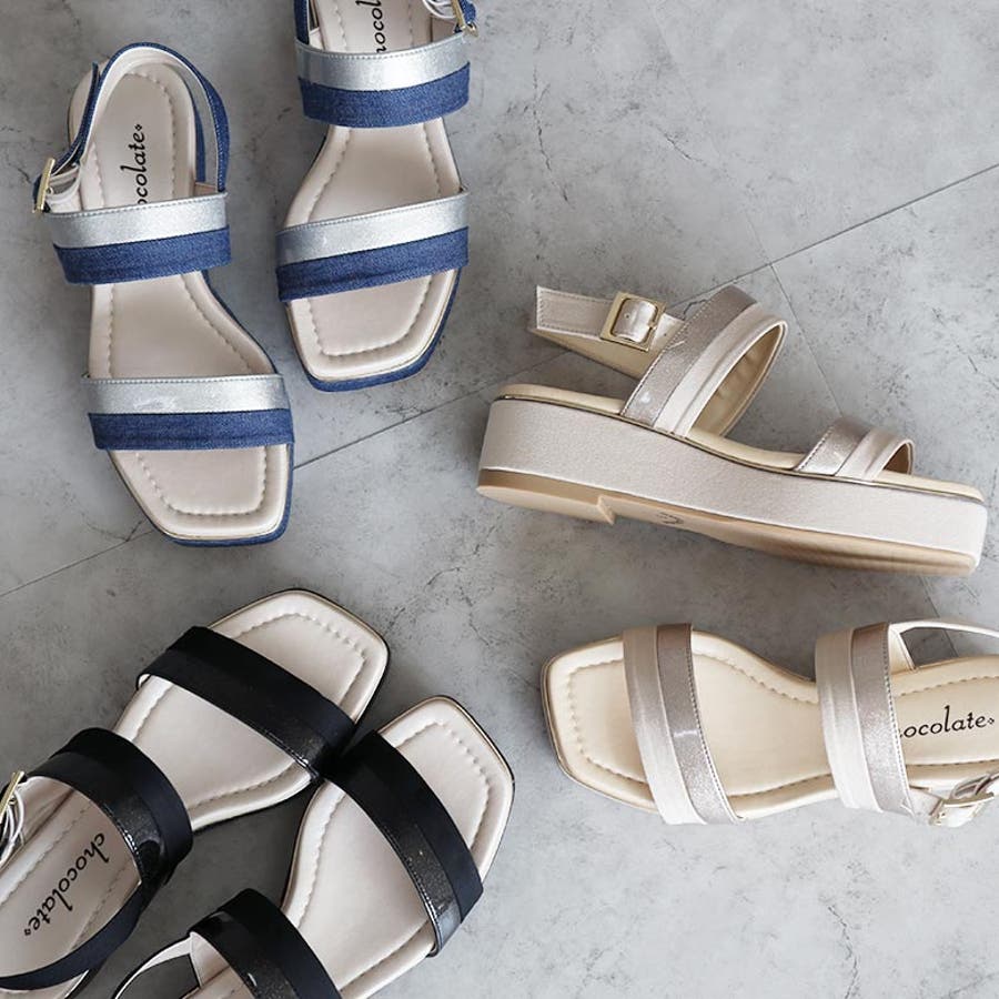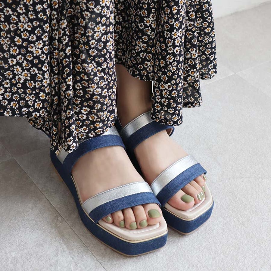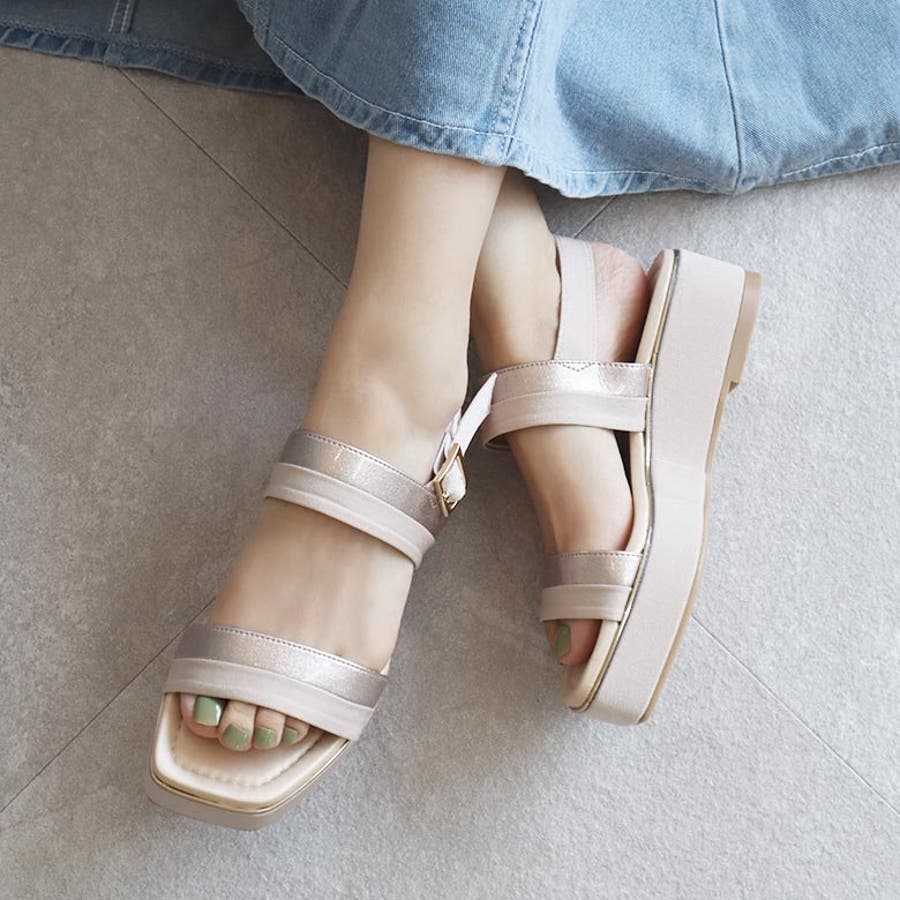 日本製 バイカラープラットフォームサンダル