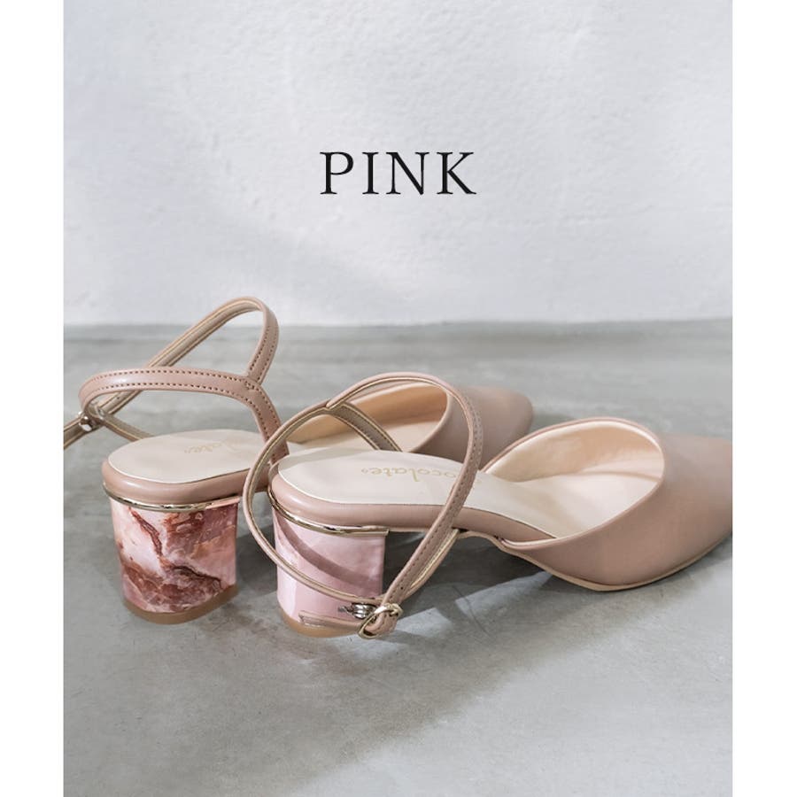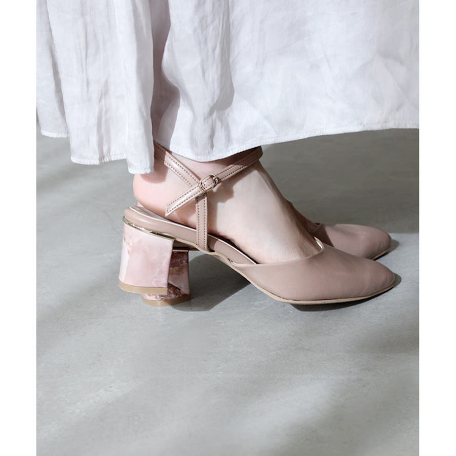 ヒールのゴールドラインと大理石の柄が魅力です。