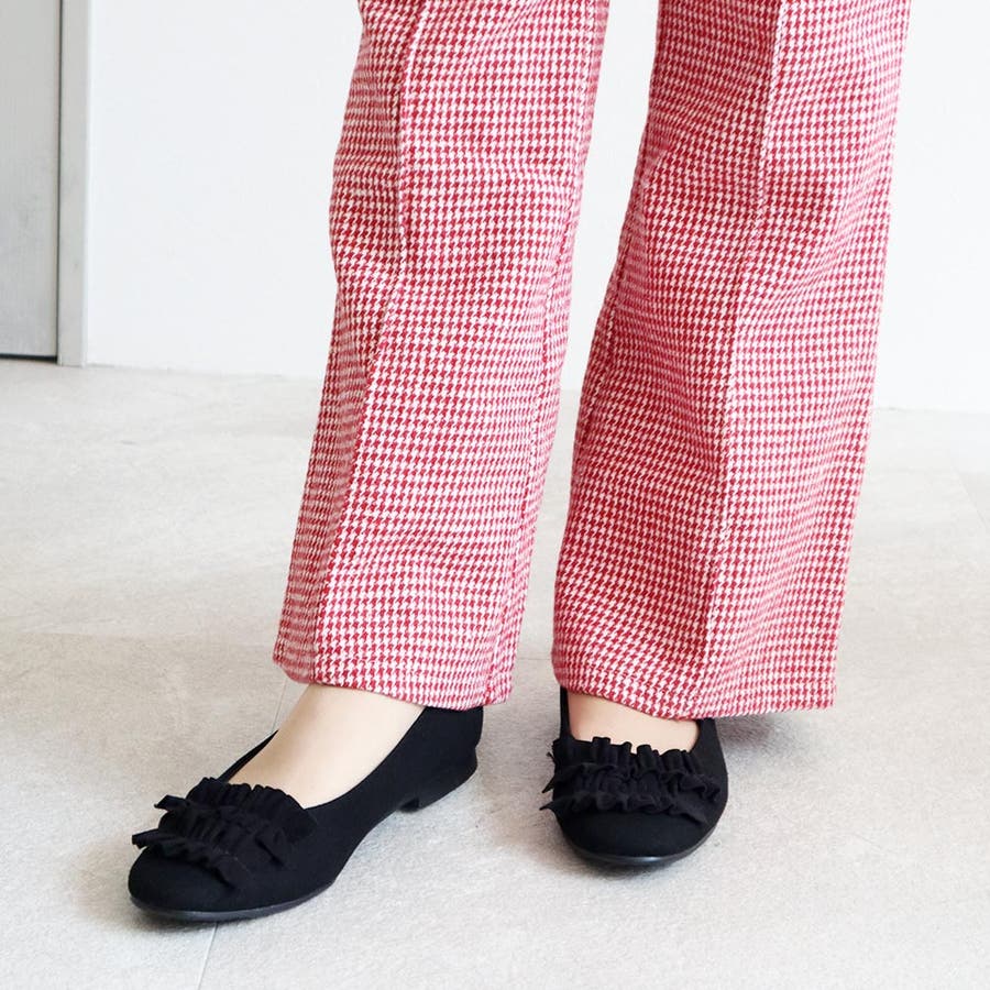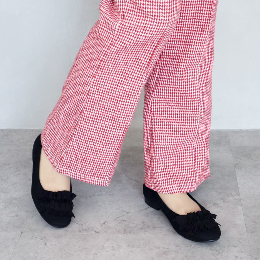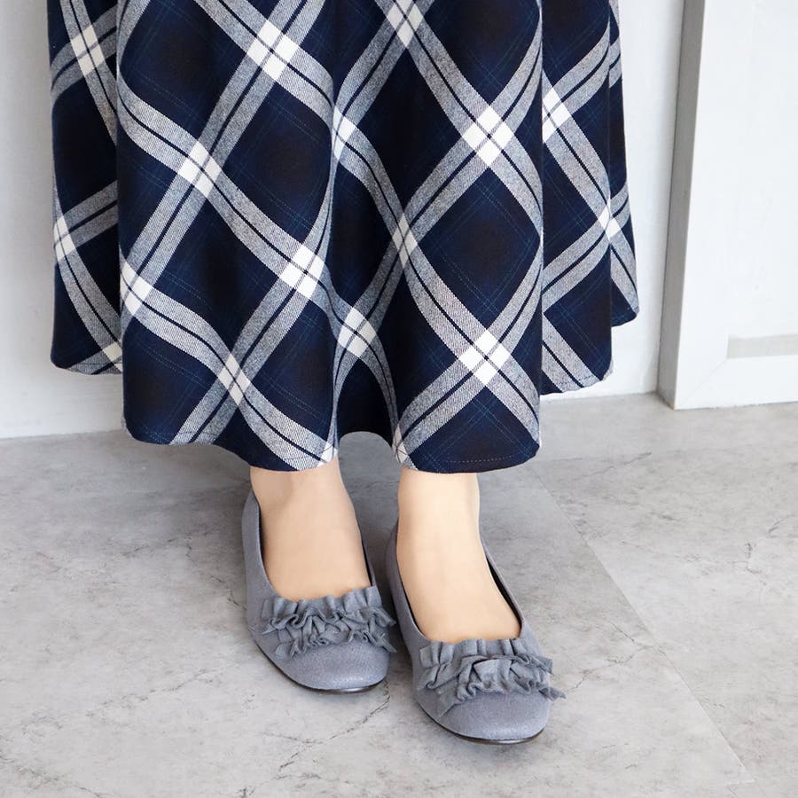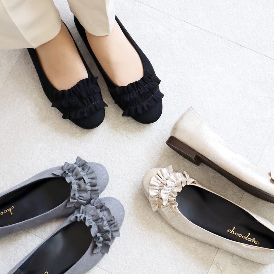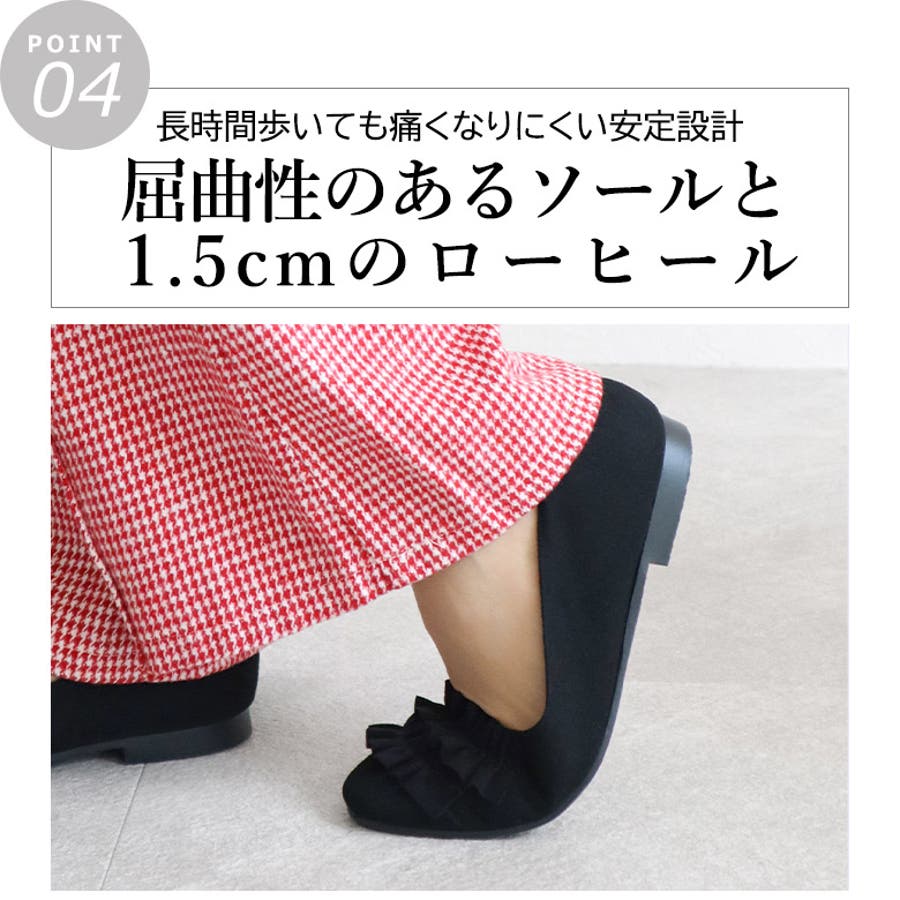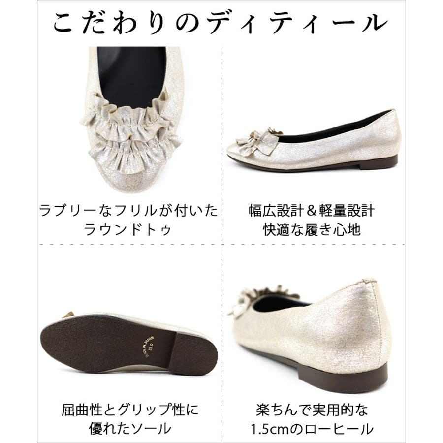 日本製 ラウンドトゥ フリル バレエパンプス ローヒール 幅広