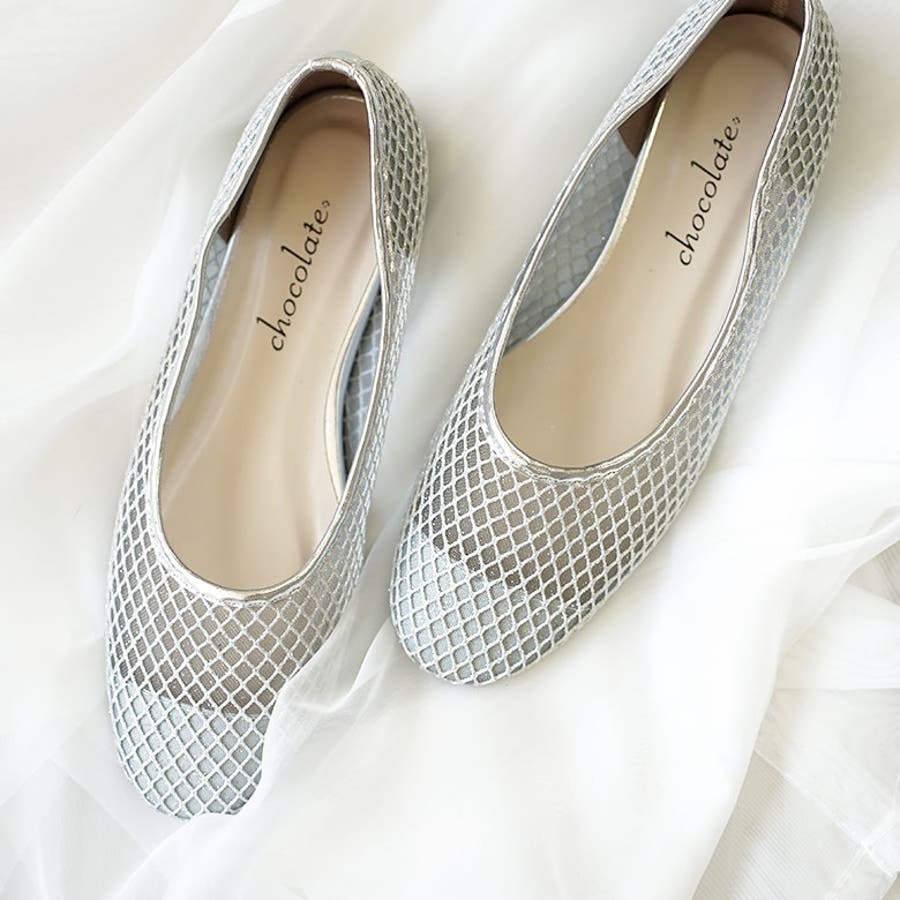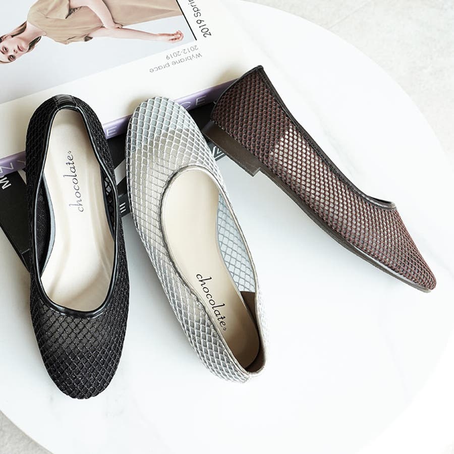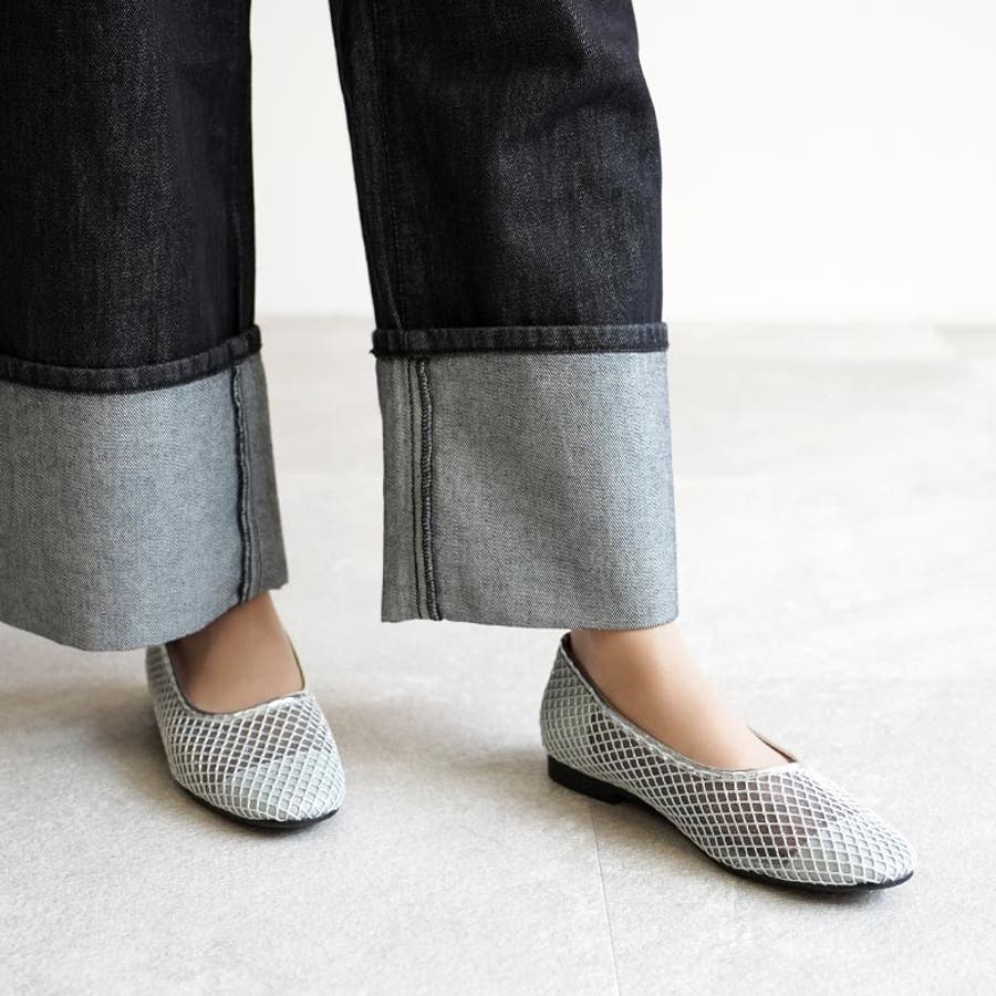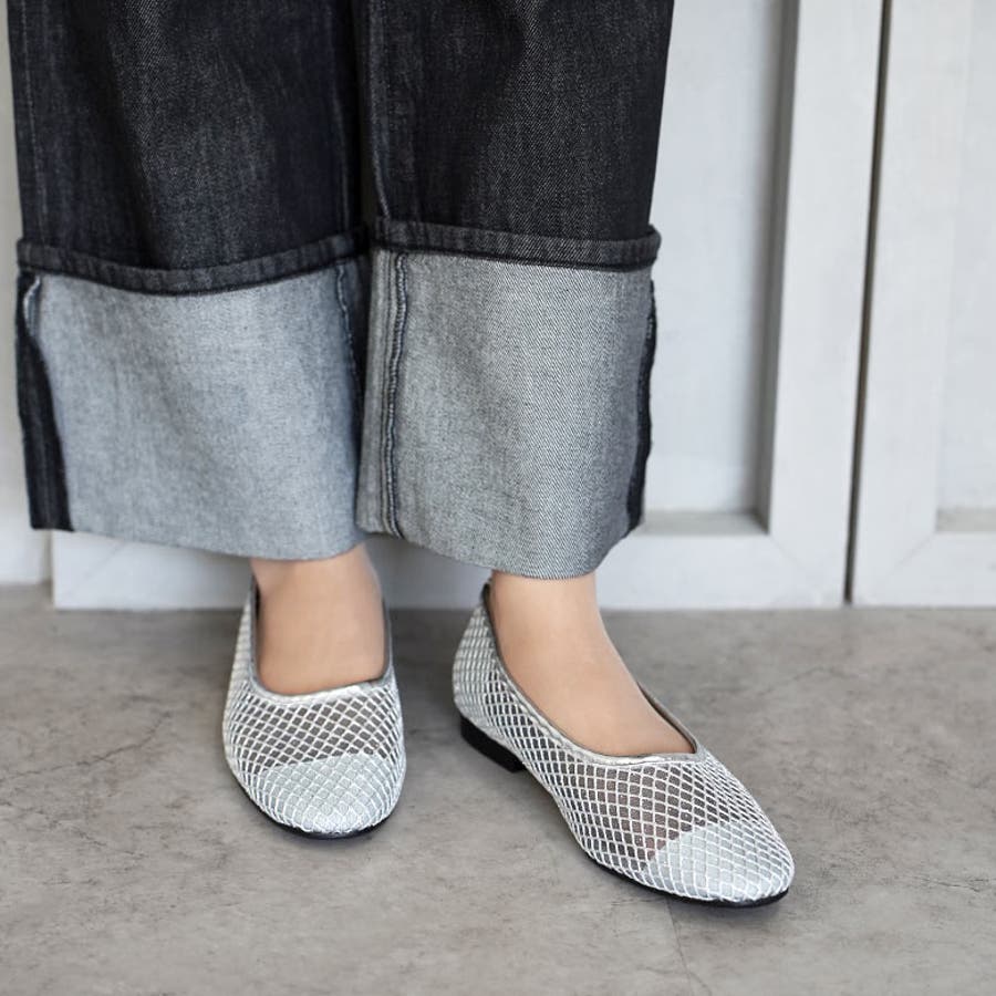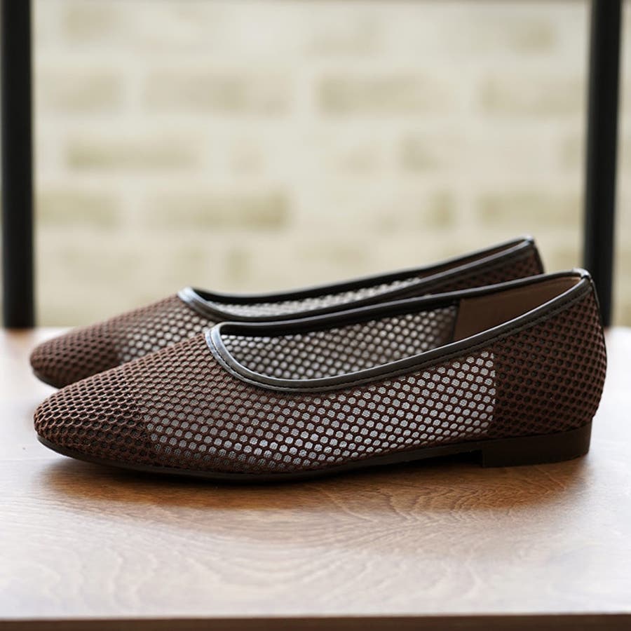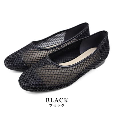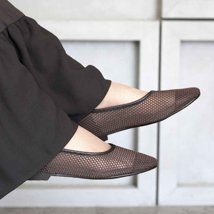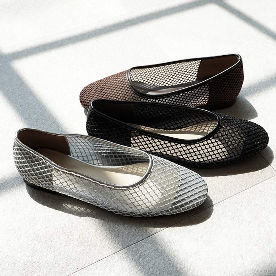 日本製 ラウンドトゥ メッシュ チュール パンプス フラット