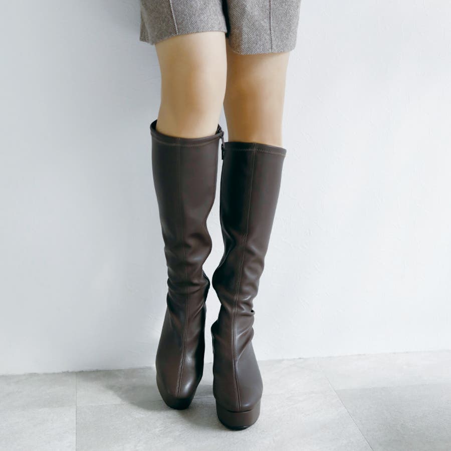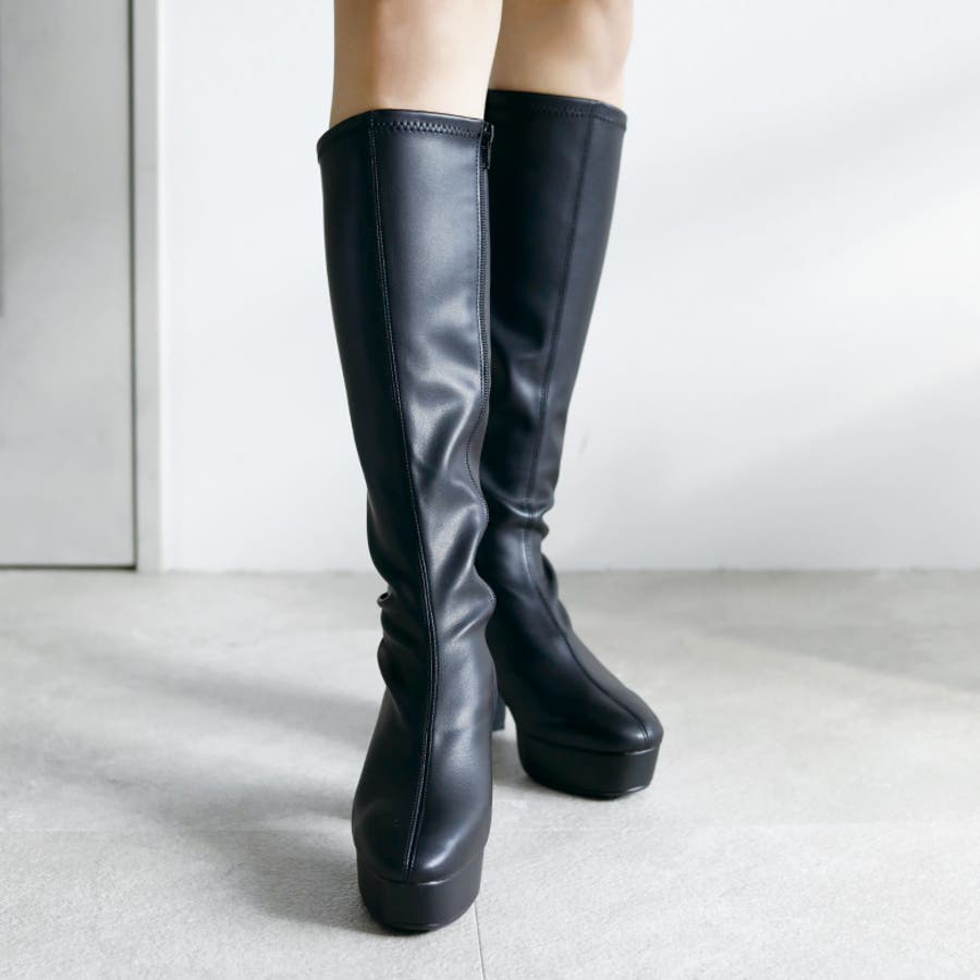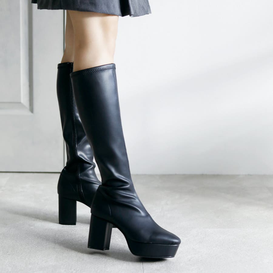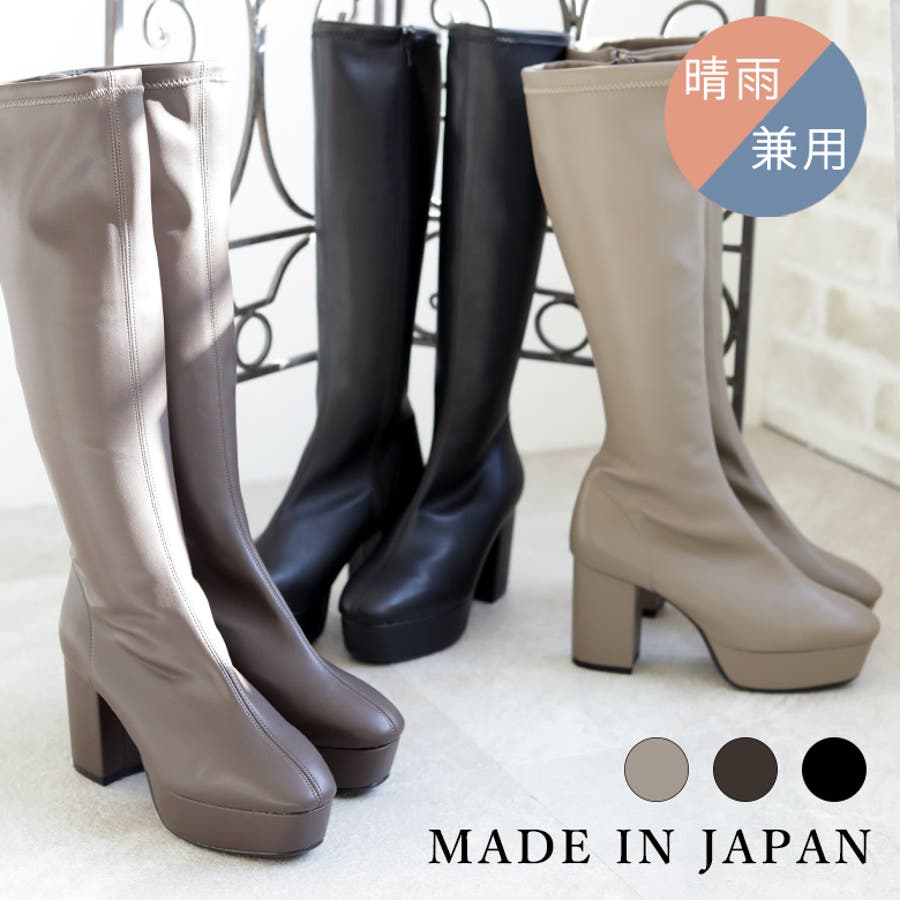 日本製 ストレッチロングブーツ 晴雨兼用 美脚