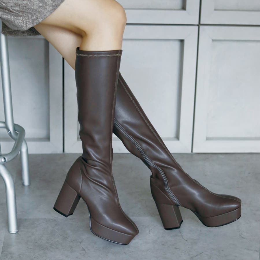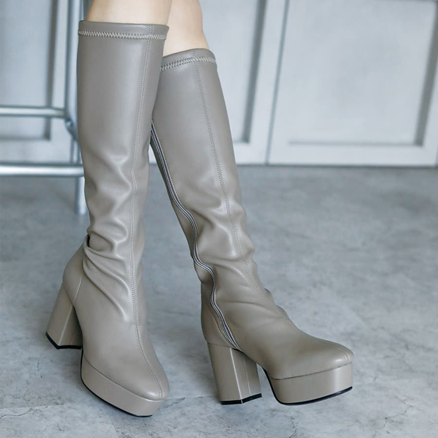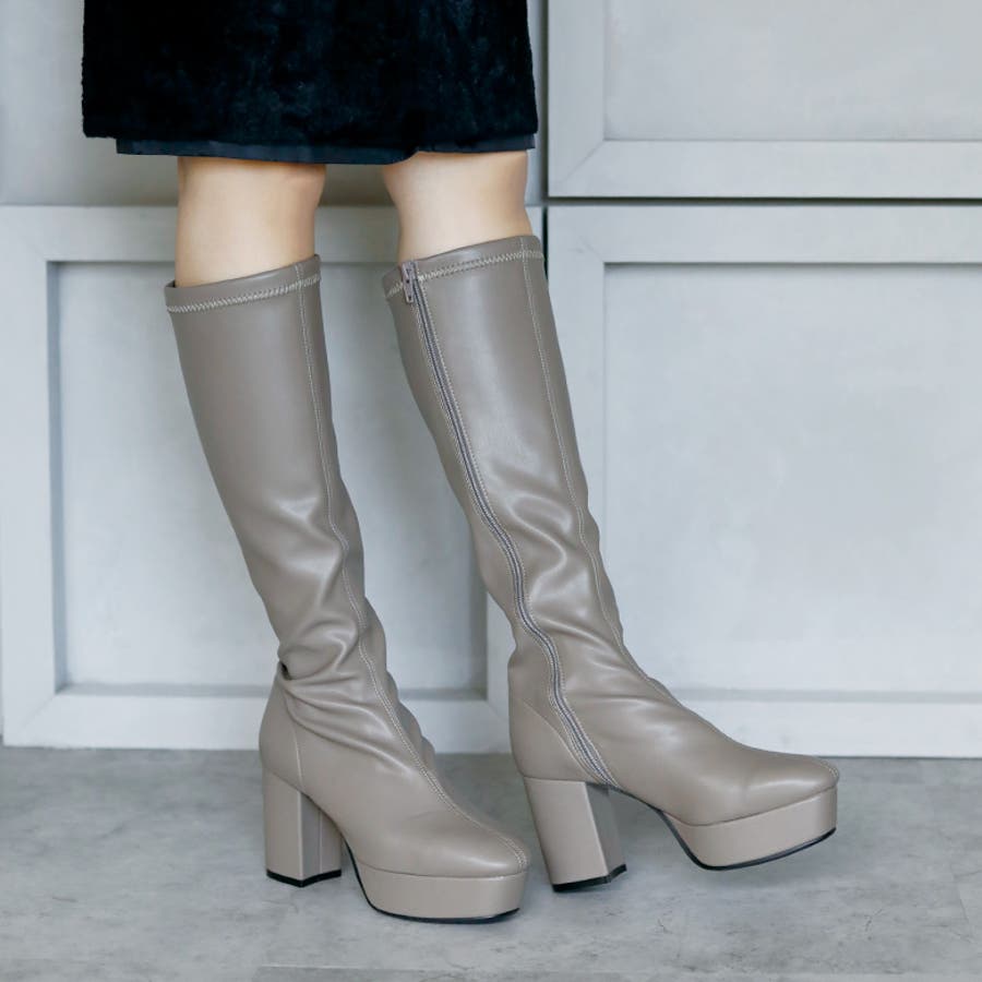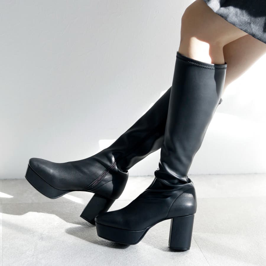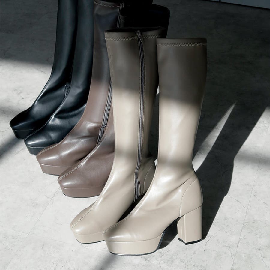 日本製 ストレッチロングブーツ 晴雨兼用 美脚