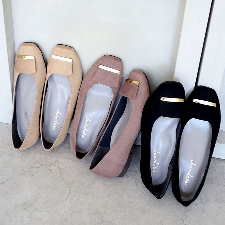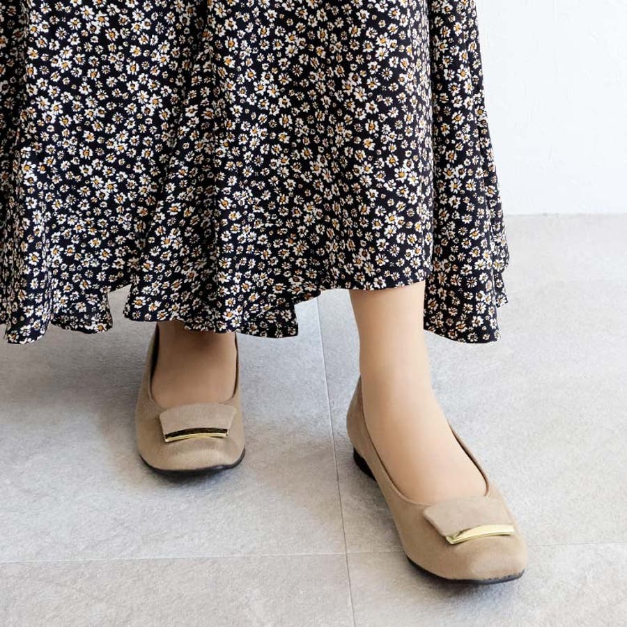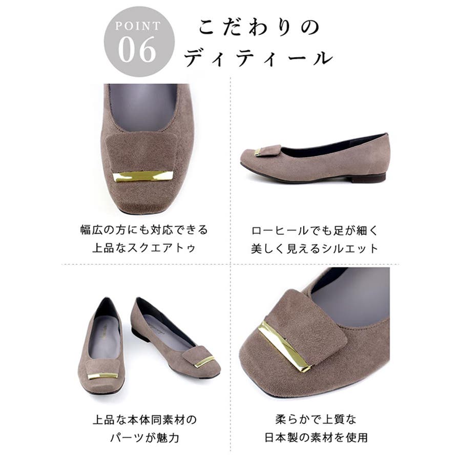 日本製 スクエアトゥ モチーフ付き フラットパンプス 晴雨兼用 レイン