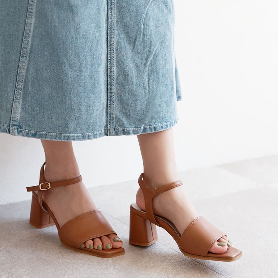スクエアトゥのシンプルなサンダルです。