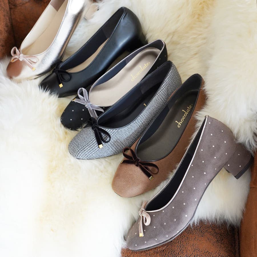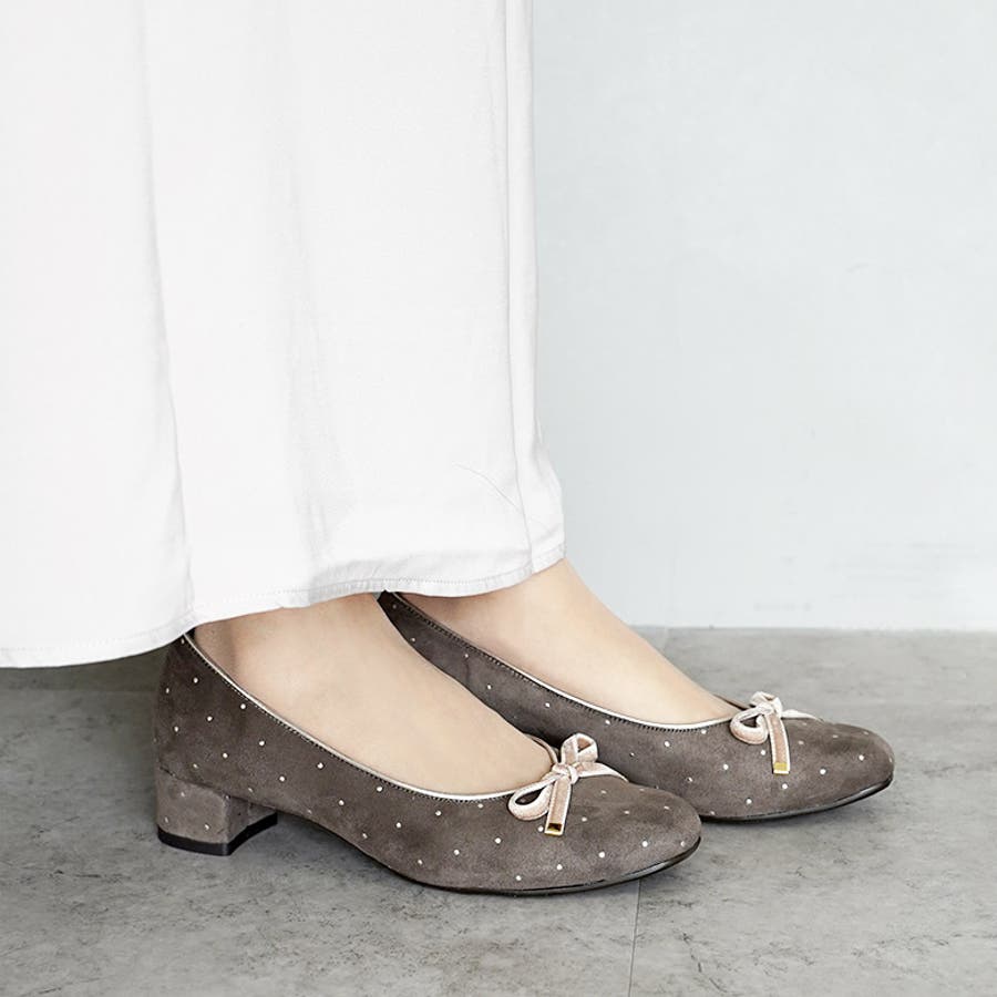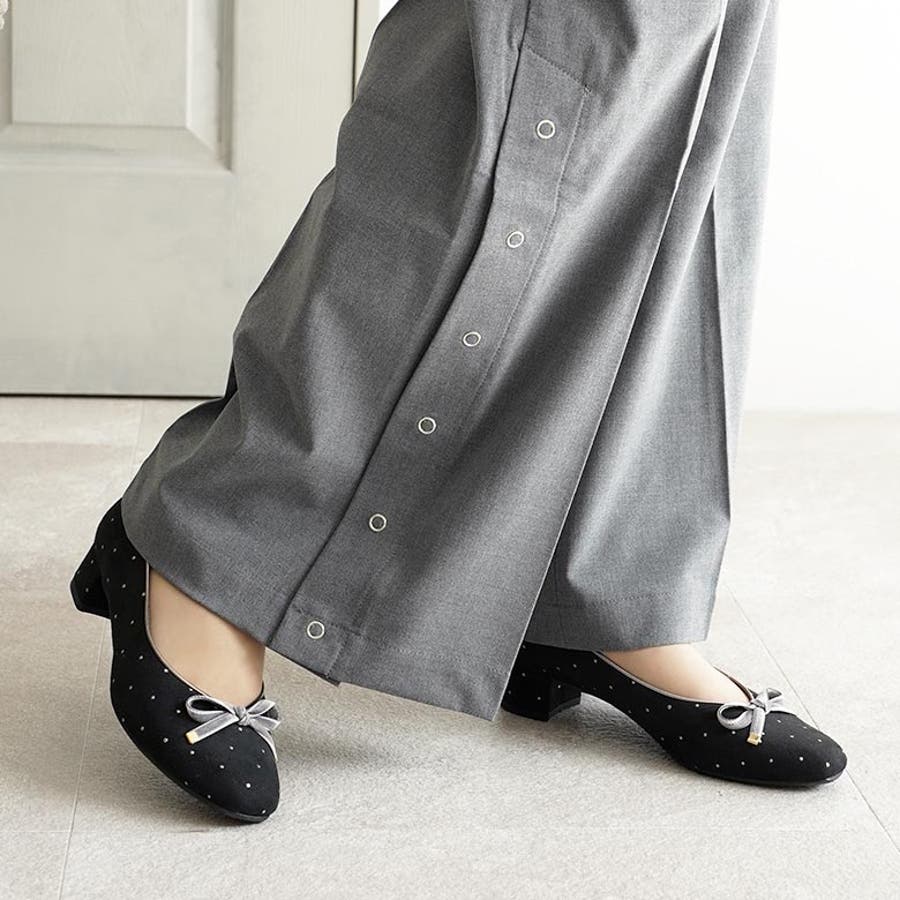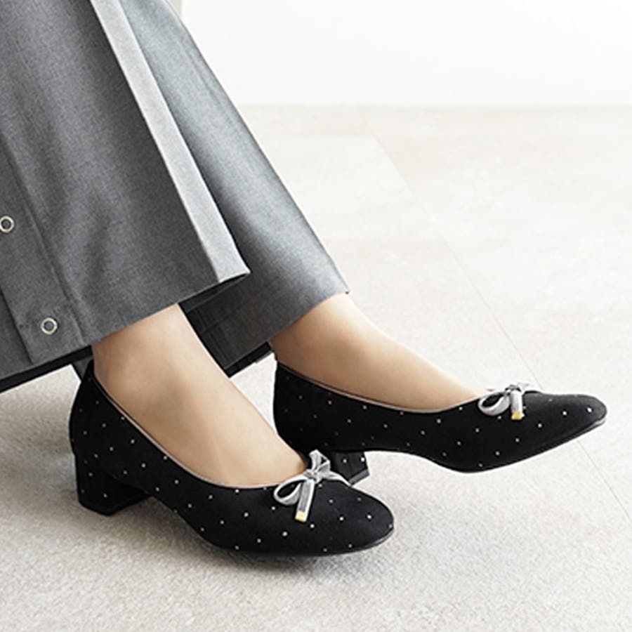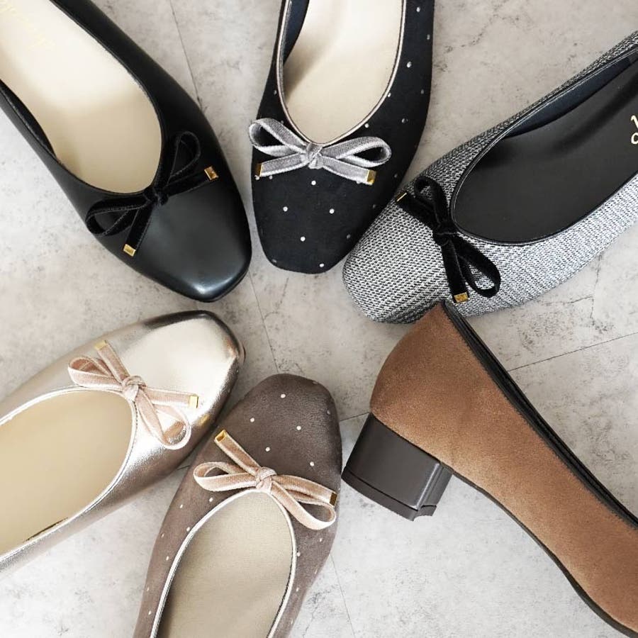 日本製 ベロアリボン ヒール バレエパンプス 晴雨兼用 レイン