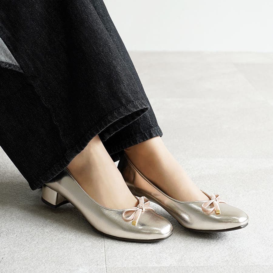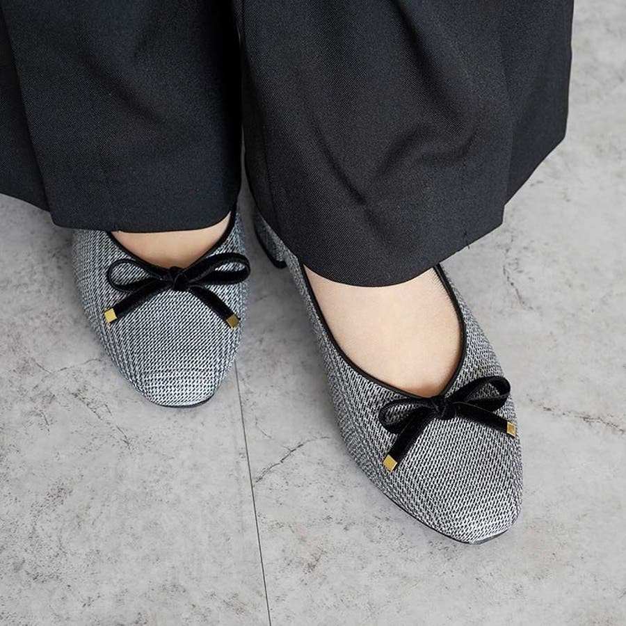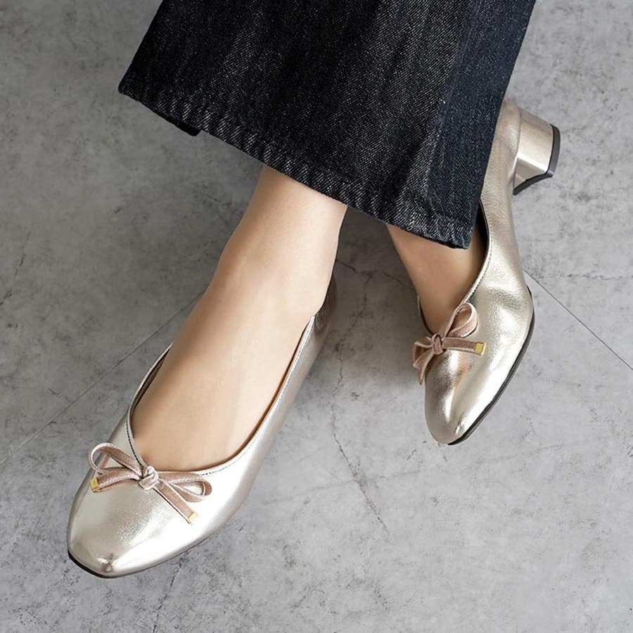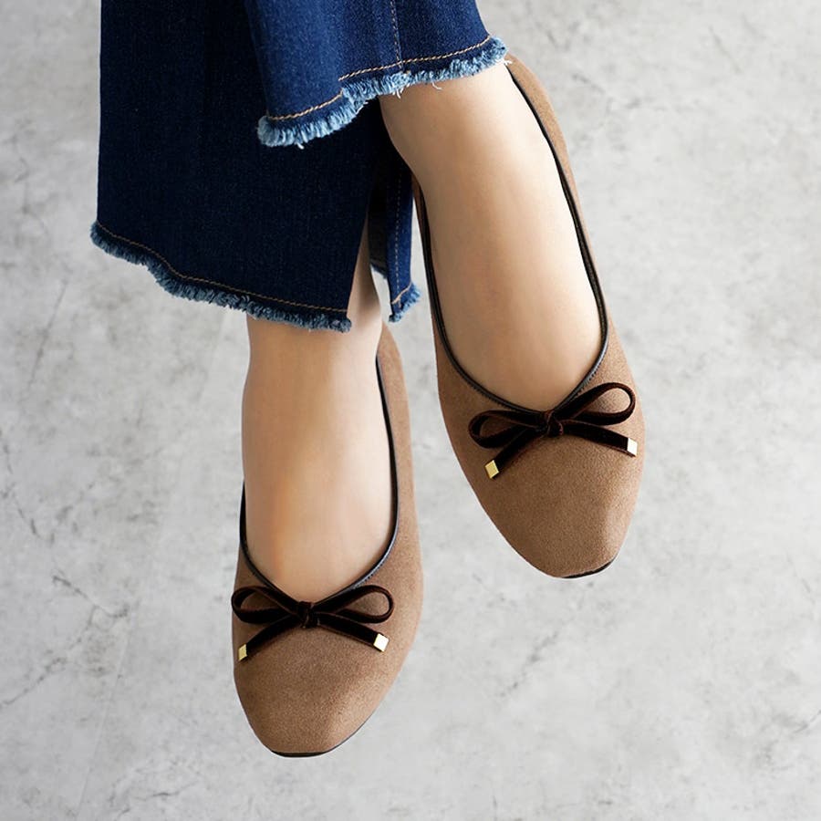 日本製のシンプルなスクエアトゥのバレエシューズです。