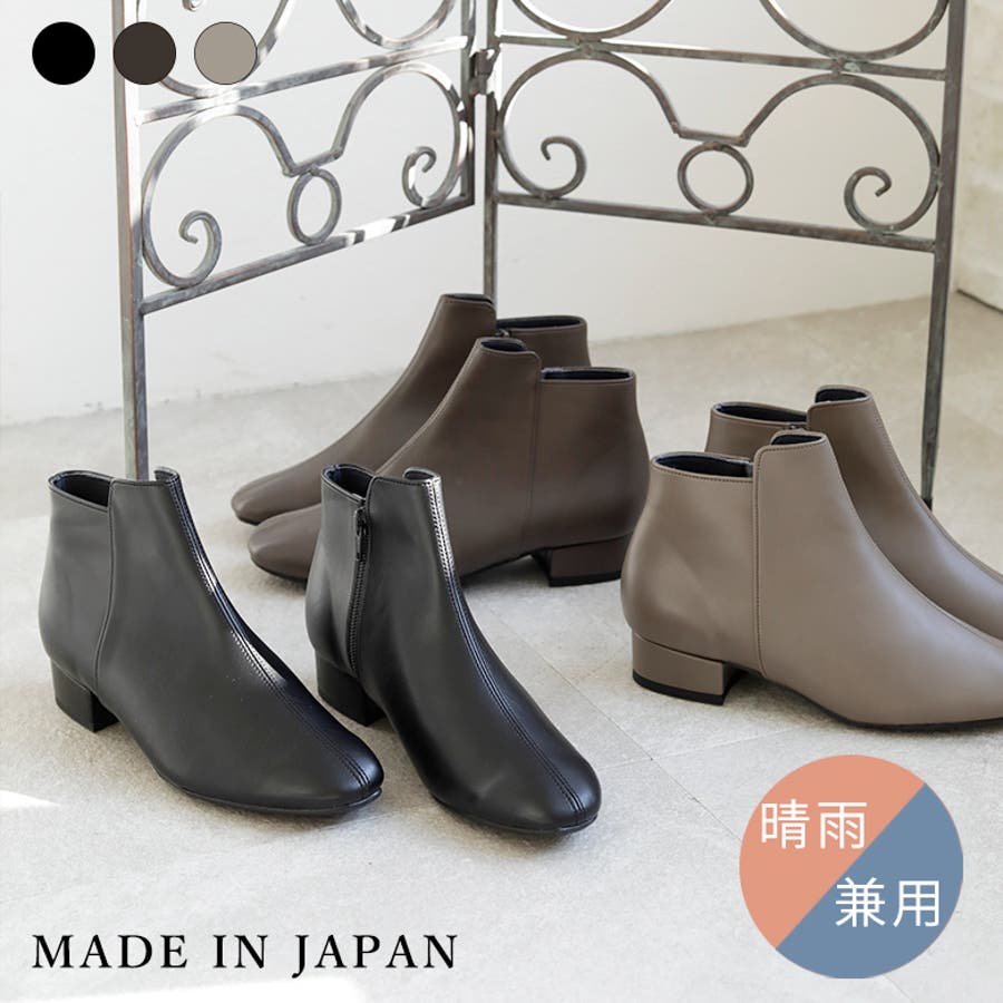 日本製 シンプルショートブーツ 晴雨兼用