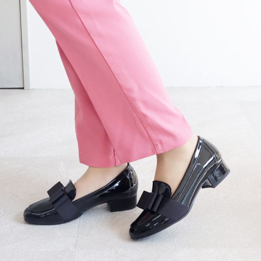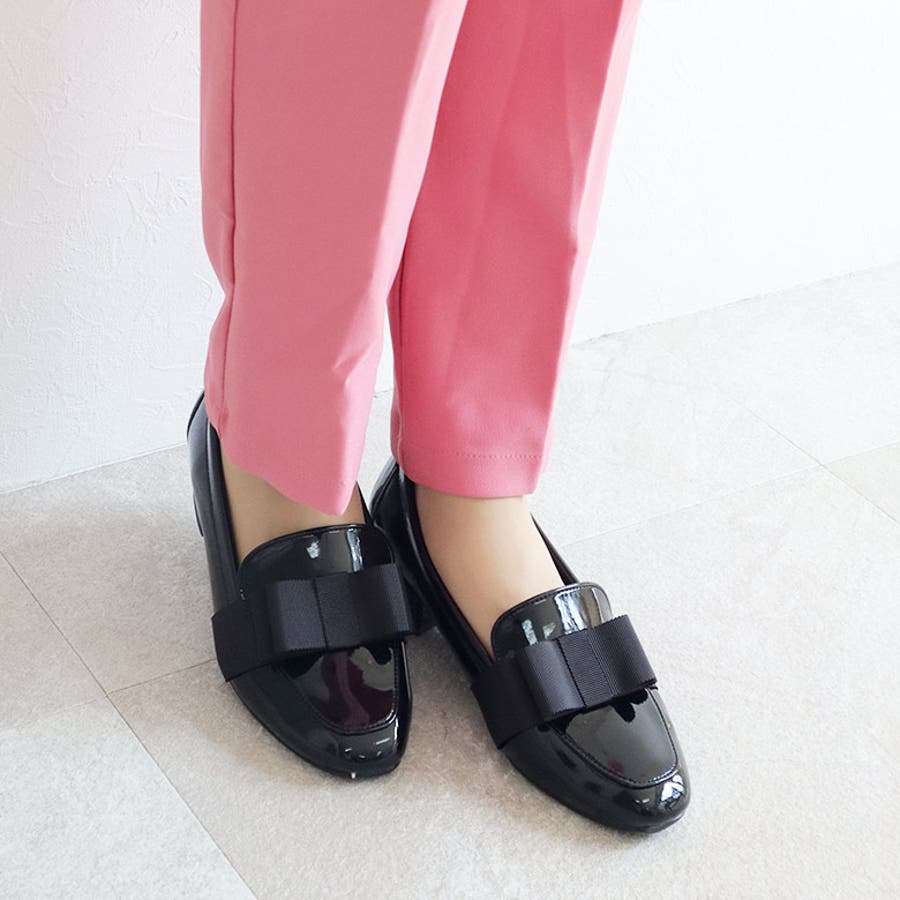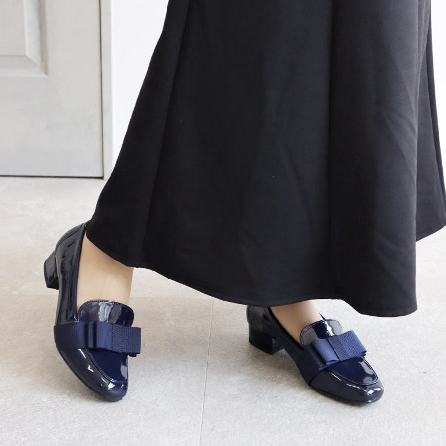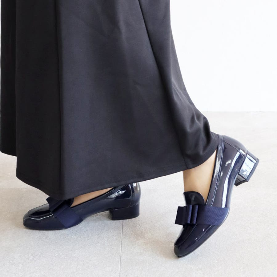 日本製 グログランリボン ローファー パンプス 晴雨兼用 レイン