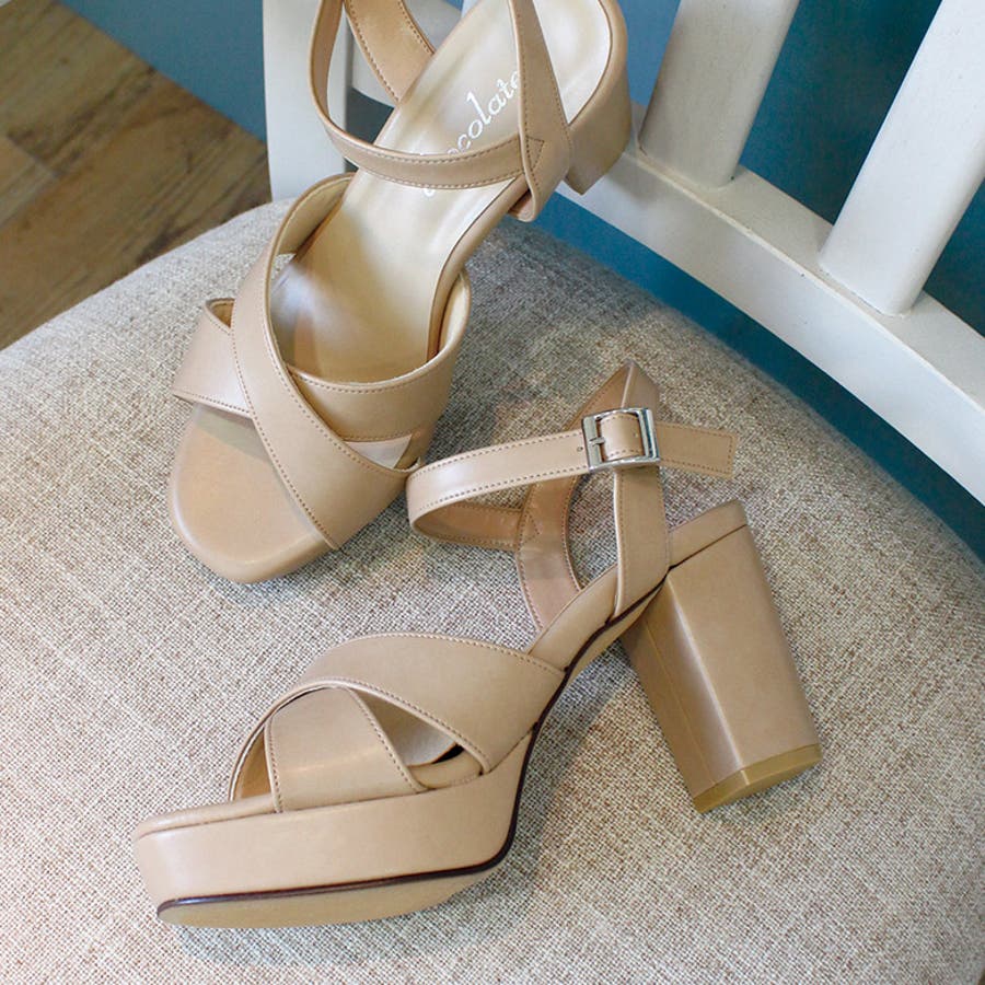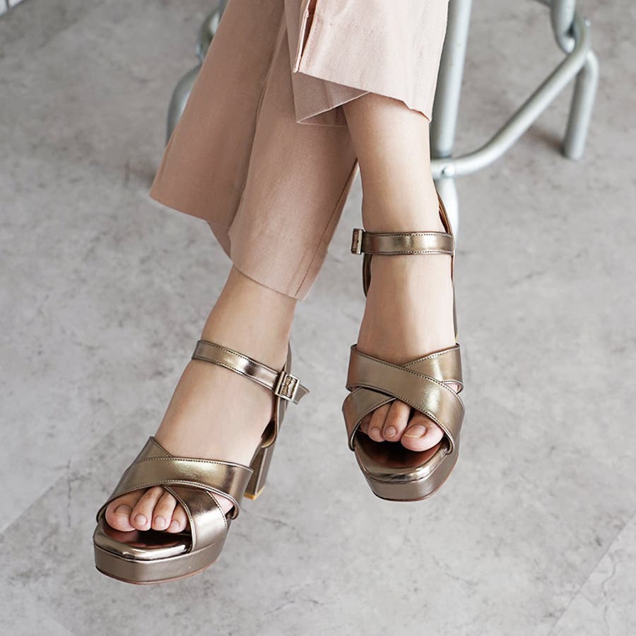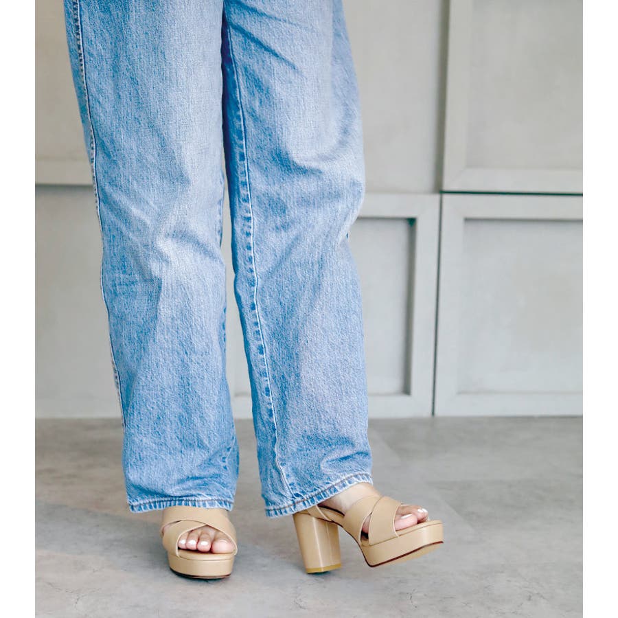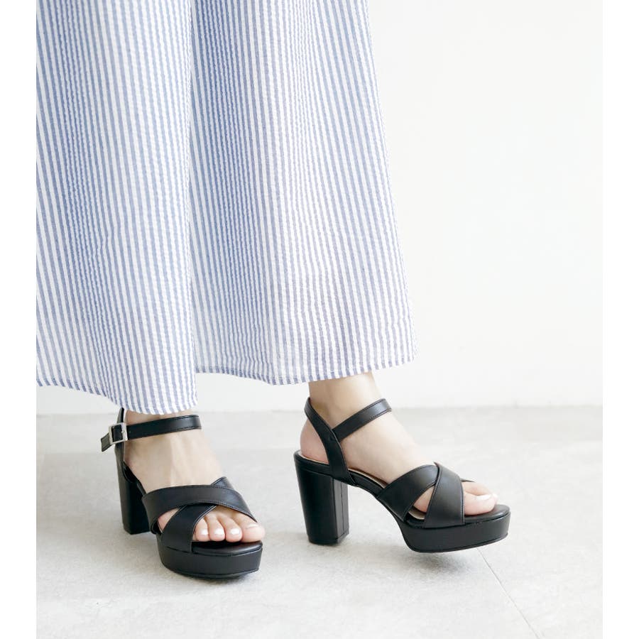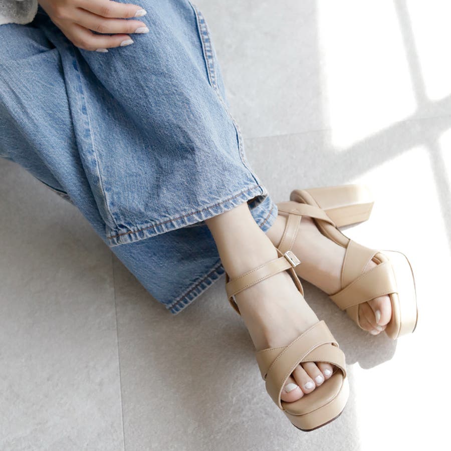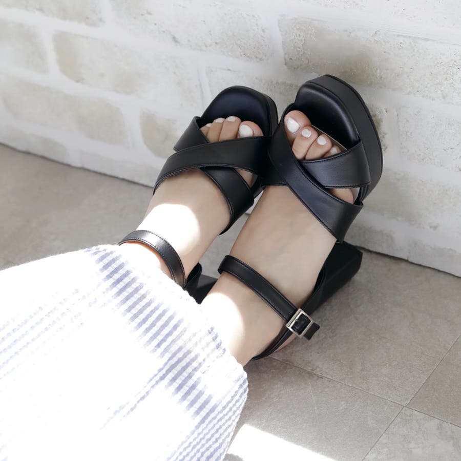 日本製 クロスストラップ プラットフォーム サンダル