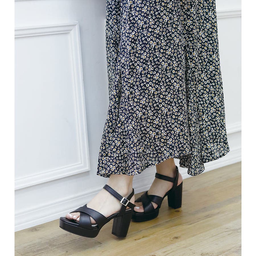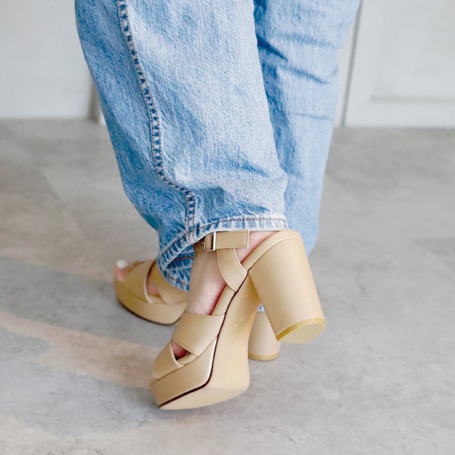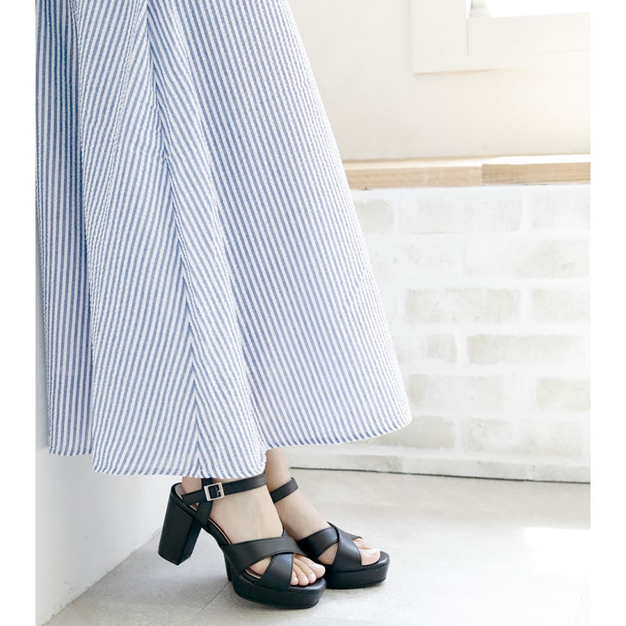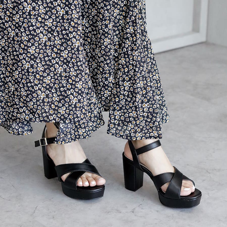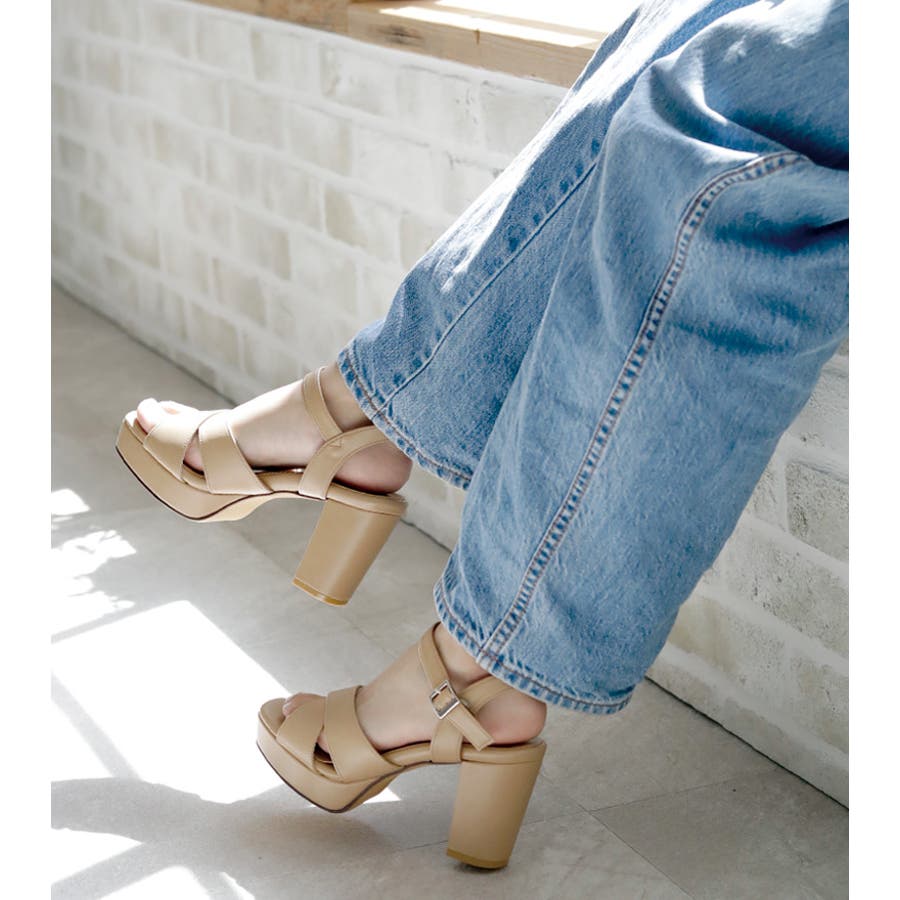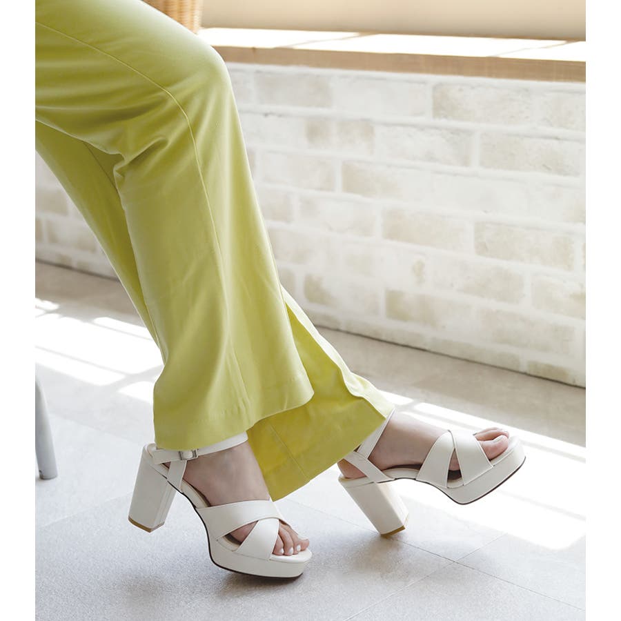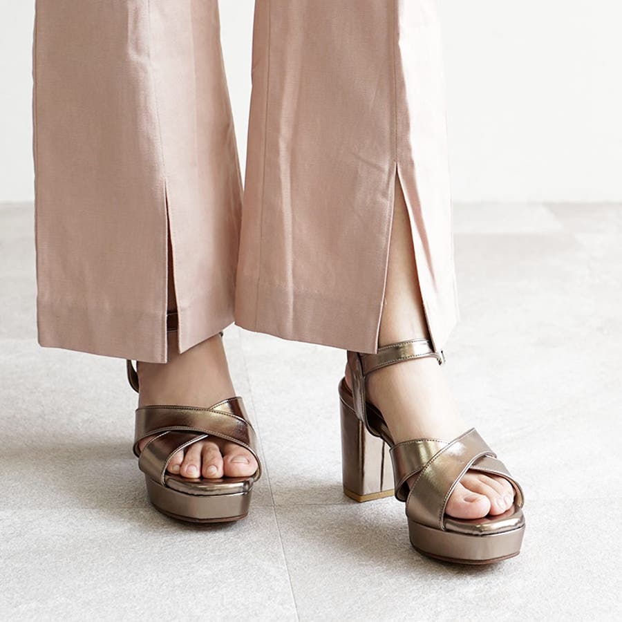 日本製 クロスストラップ プラットフォーム サンダル
