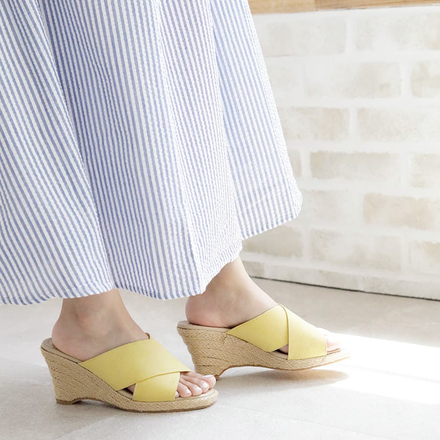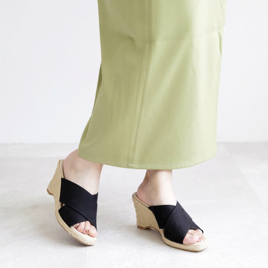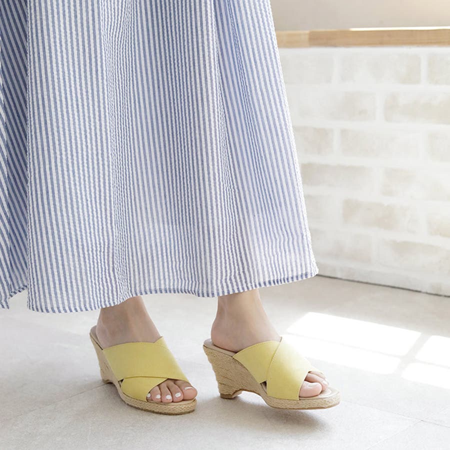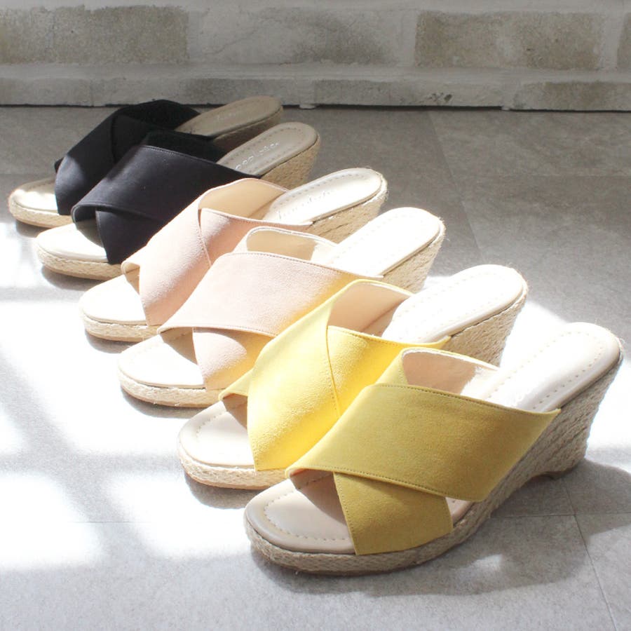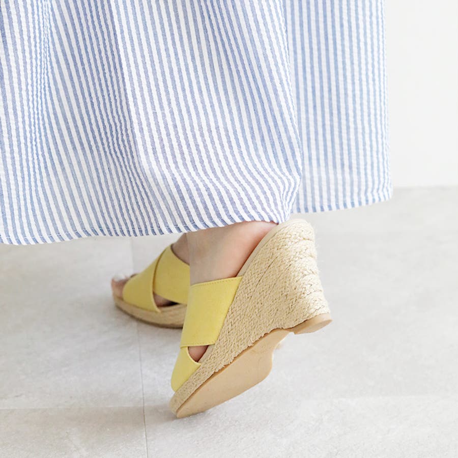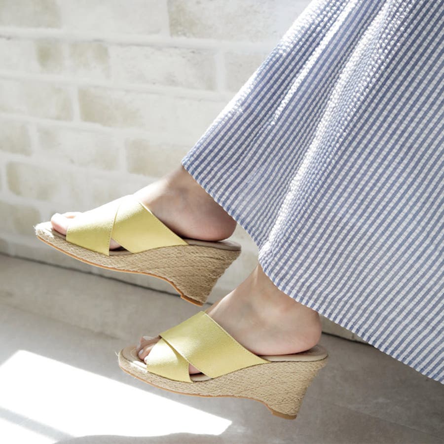夏っぽいジュートヒールを使用したスエード素材のミュールです。