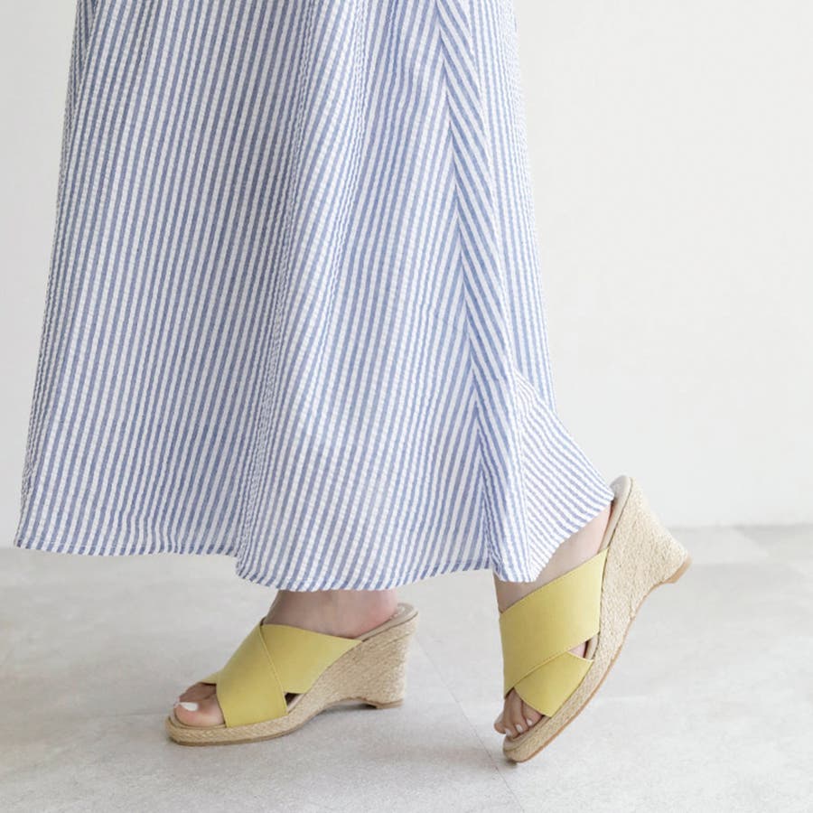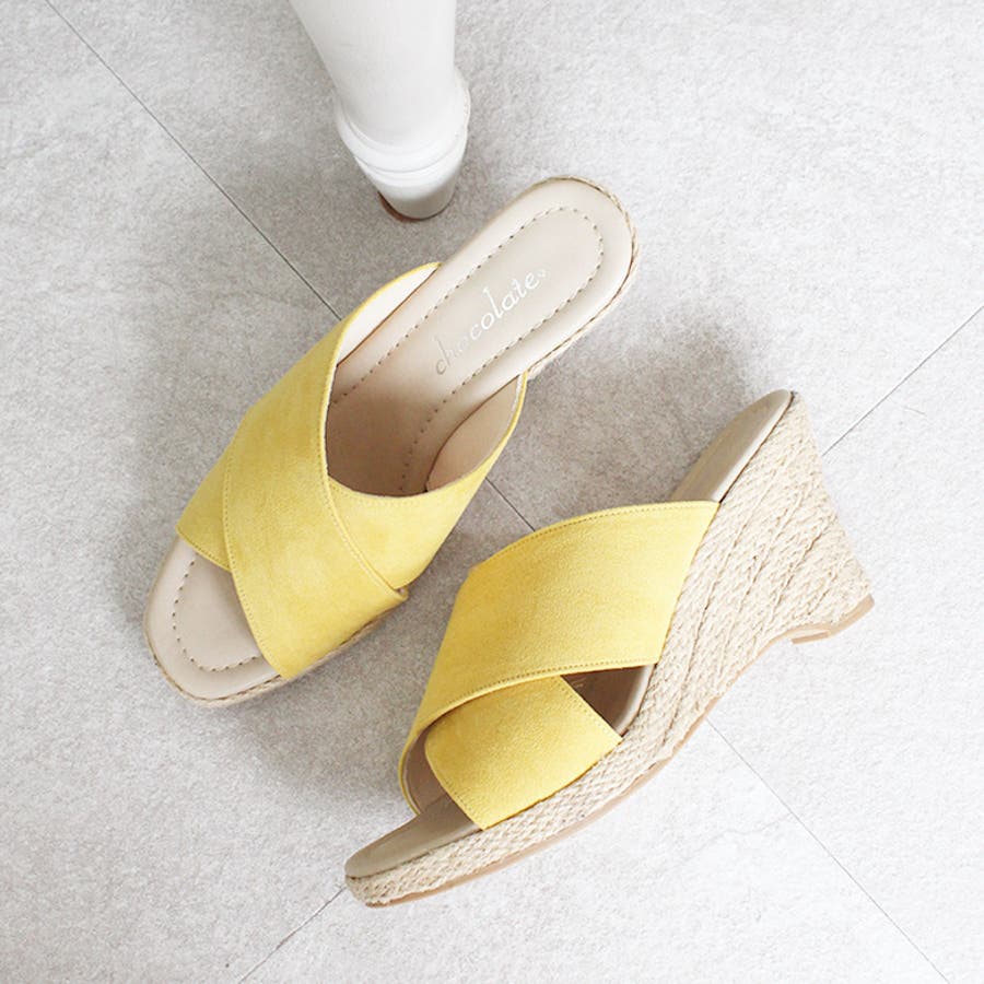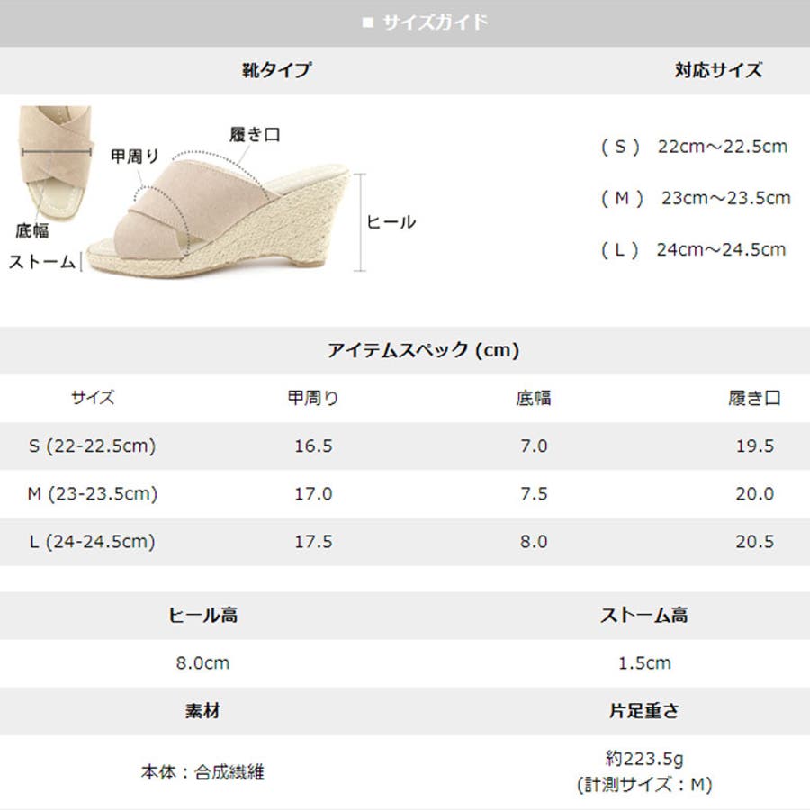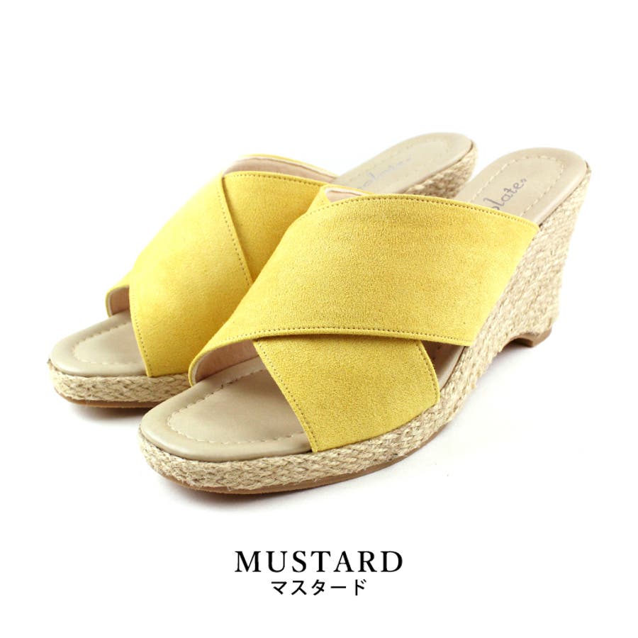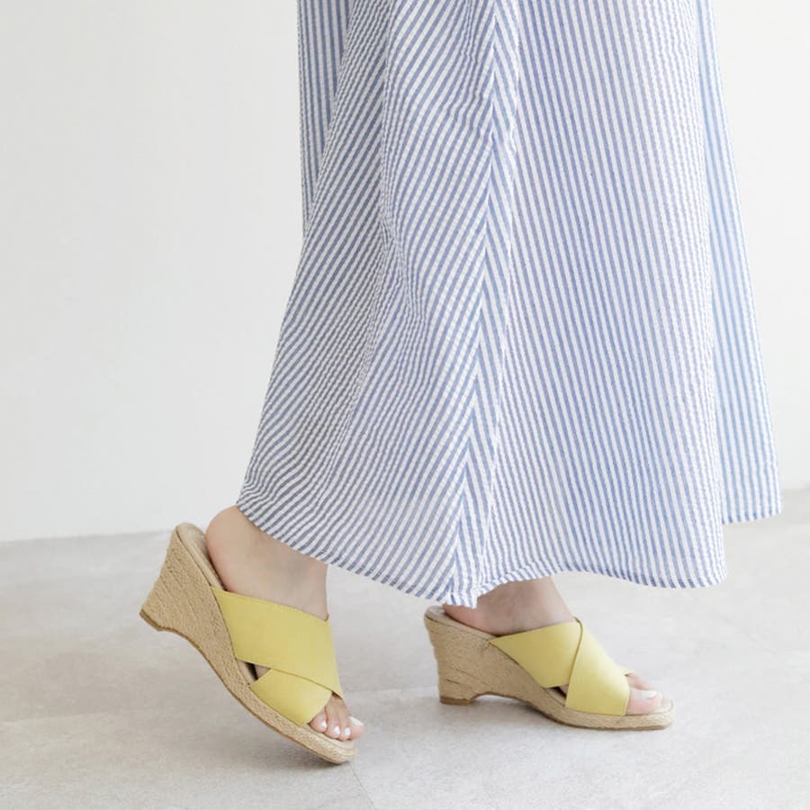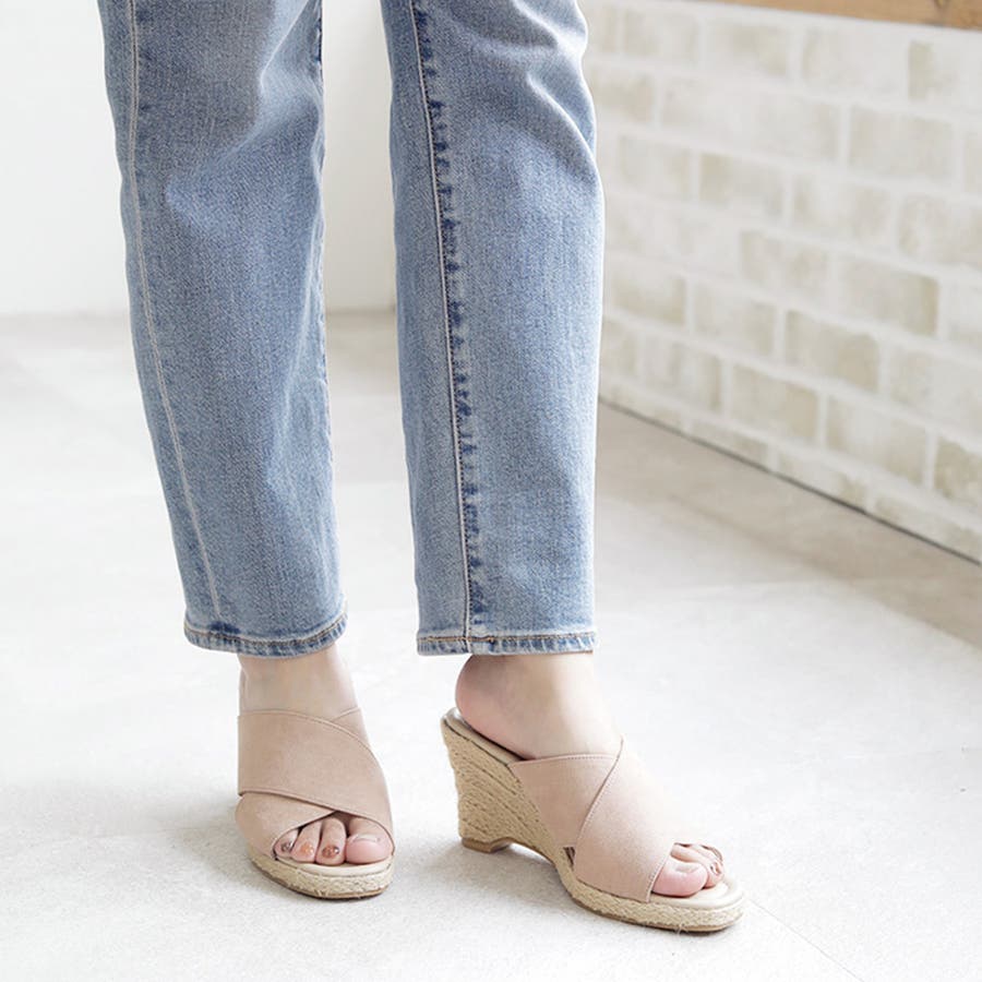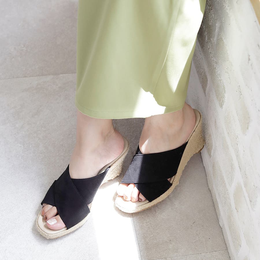 夏っぽいジュートヒールを使用したスエード素材のミュールです。