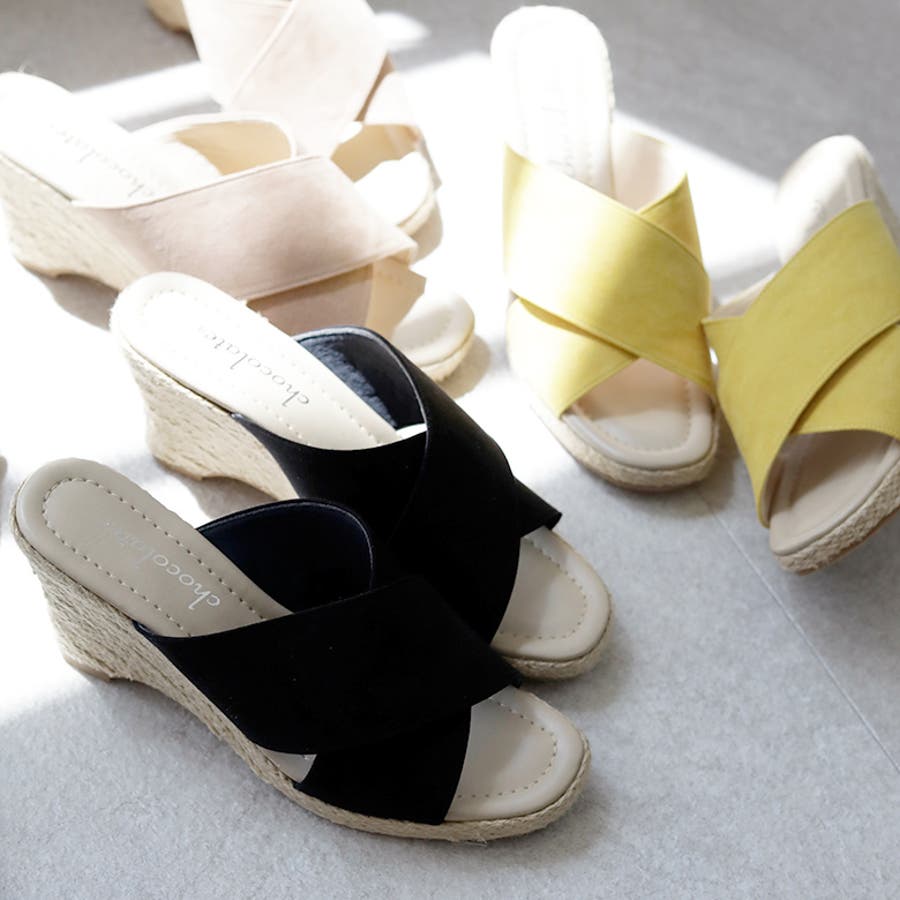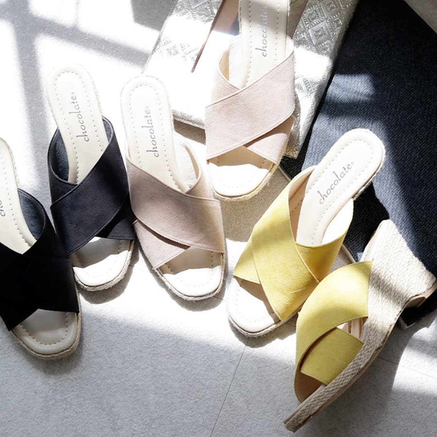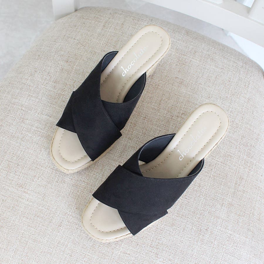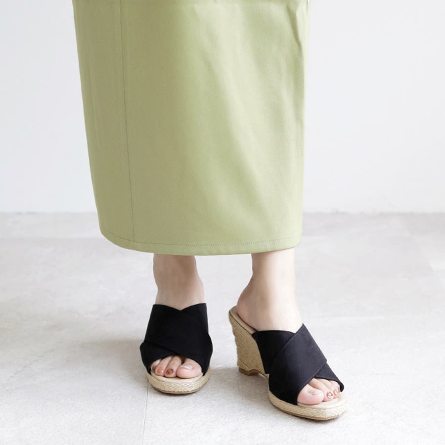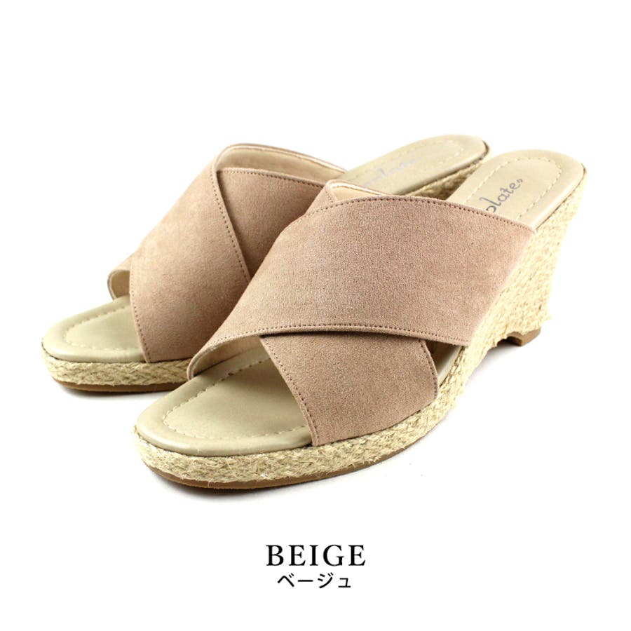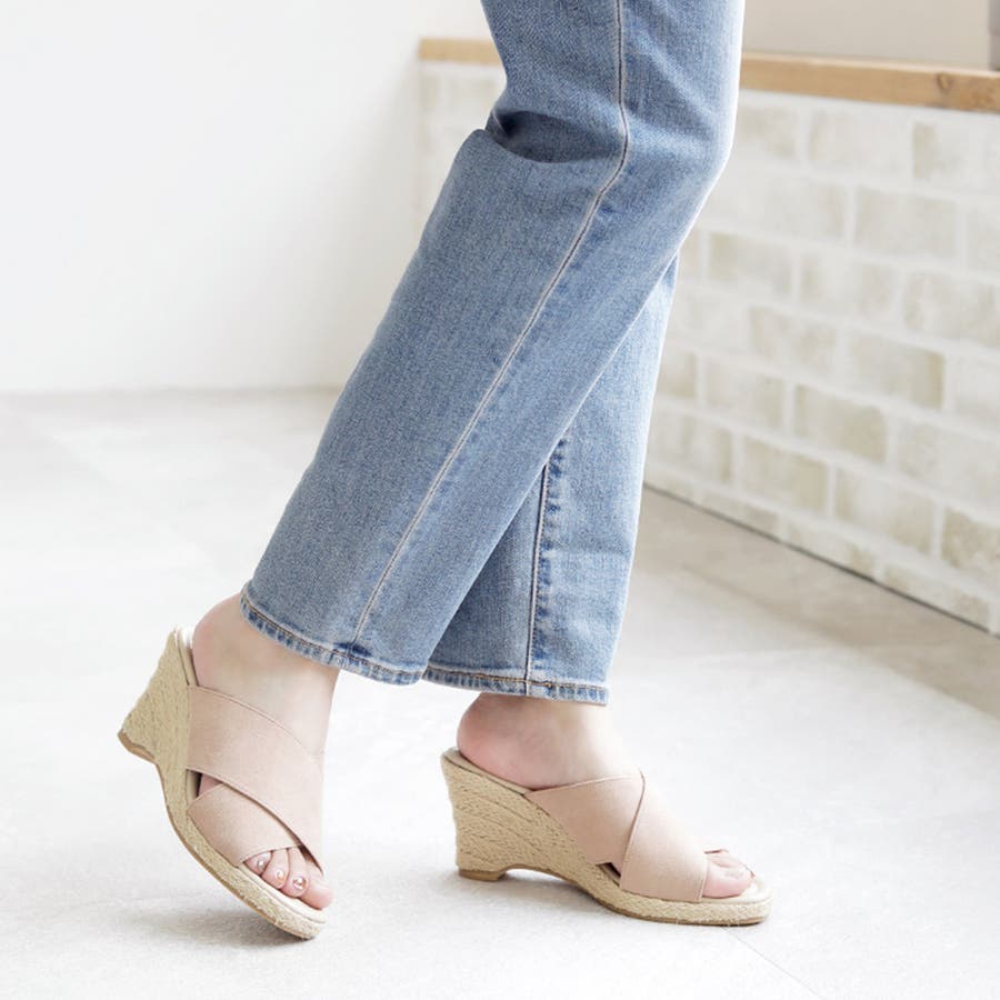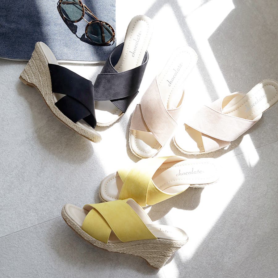 夏っぽいジュートヒールを使用したスエード素材のミュールです。