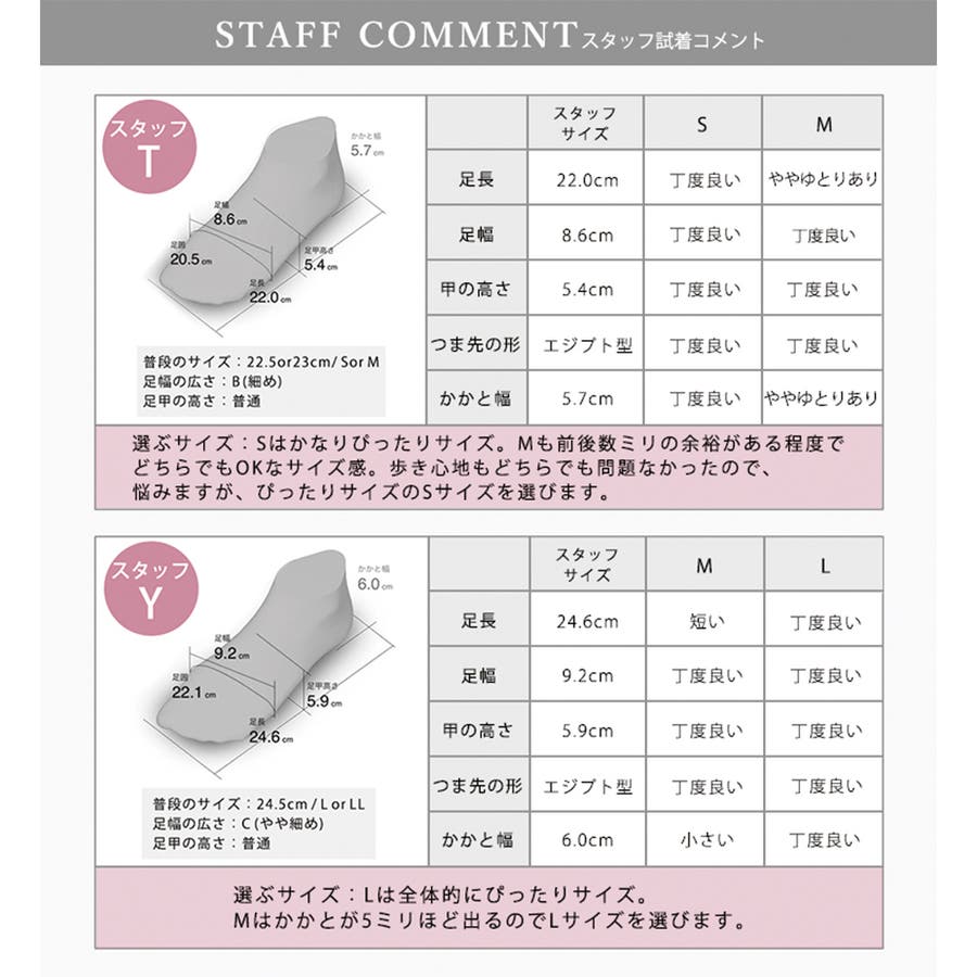 サイズ感:普段23cmのスタッフは23cmでぴったりサイズでした。いつも通りのサイズ選びでOKです。