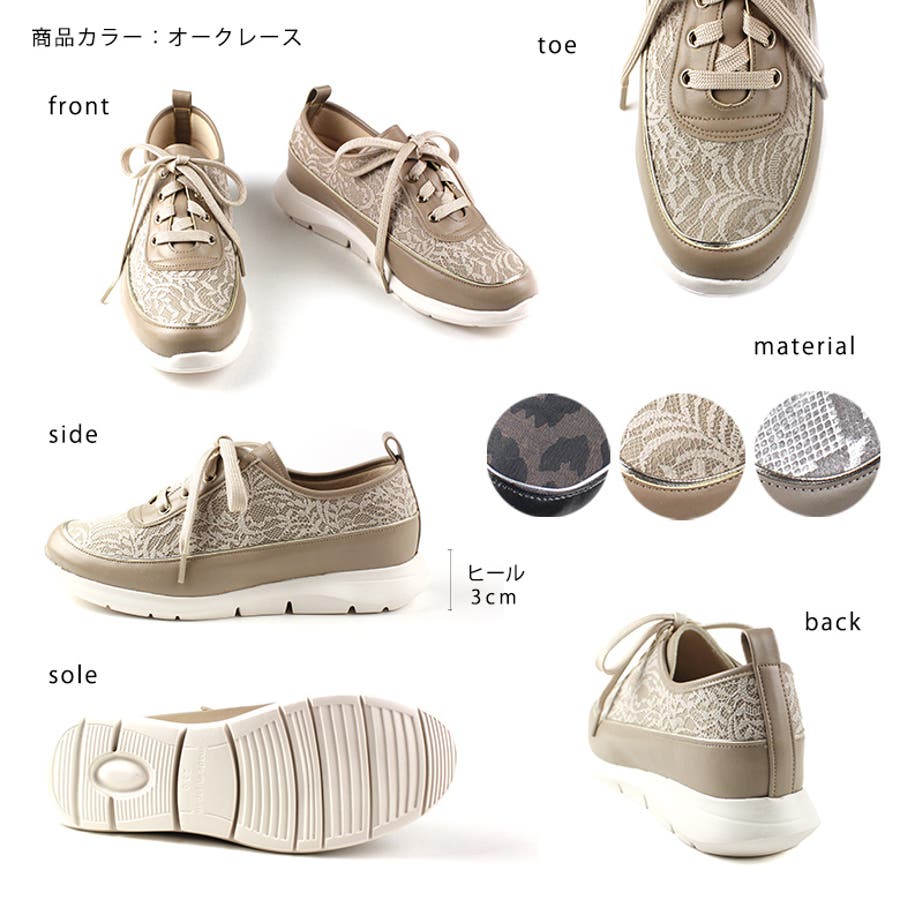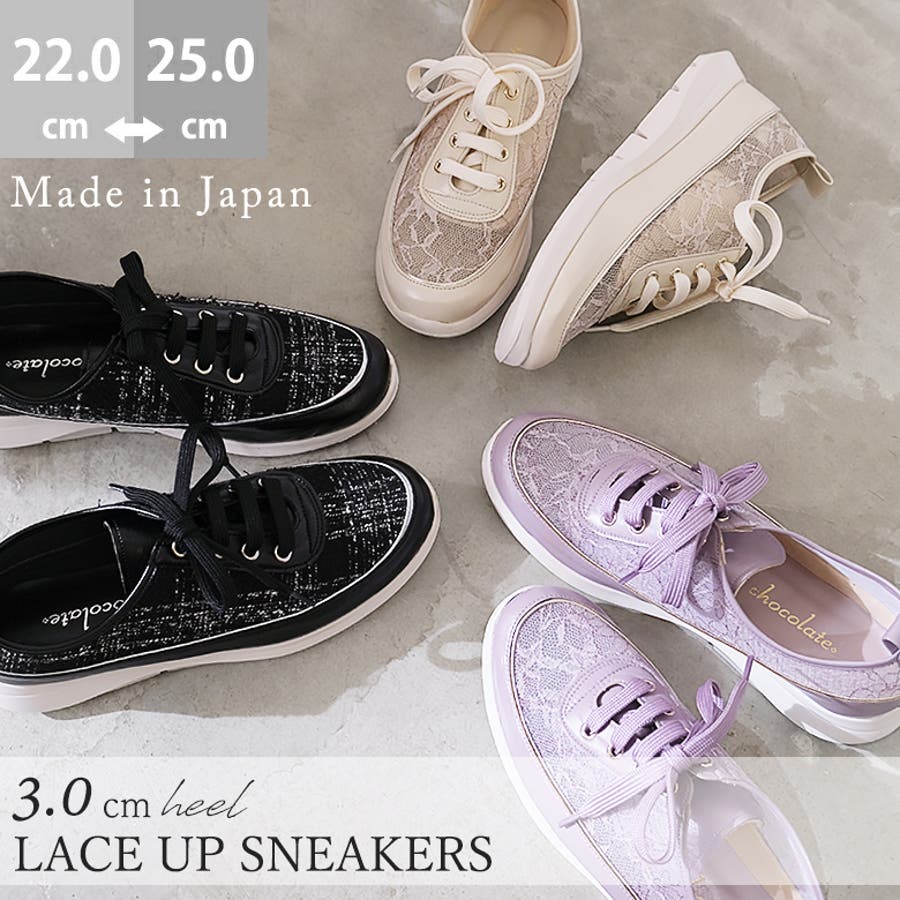 日本製 スニーカーレディース 3cmヒール 快適 軽量