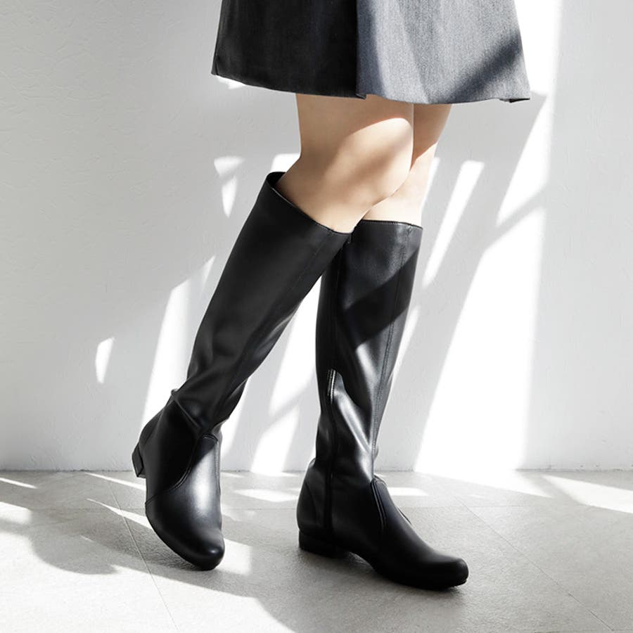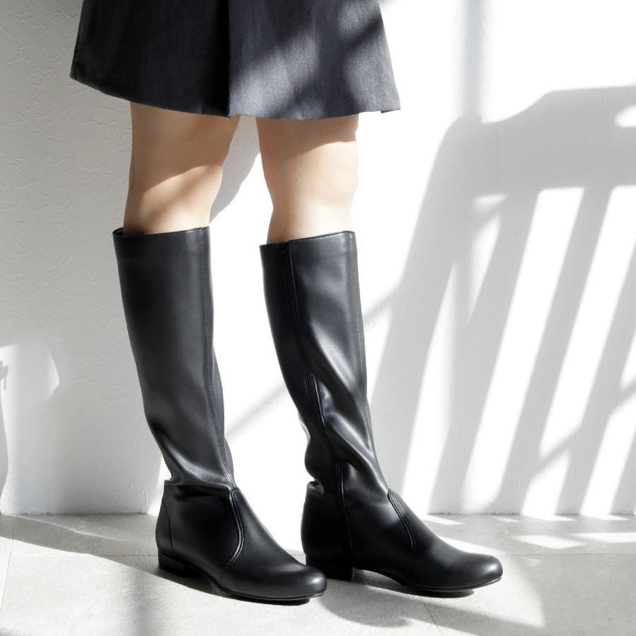 日本製のシンプルなストレッチロングブーツです。