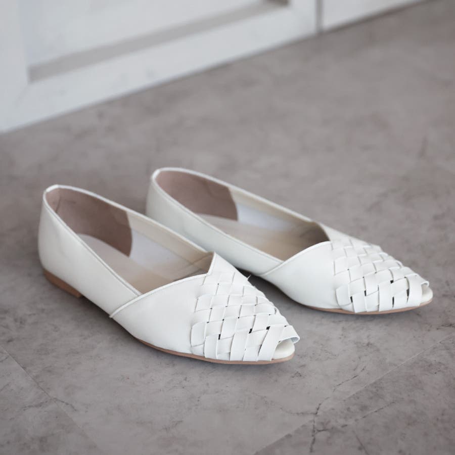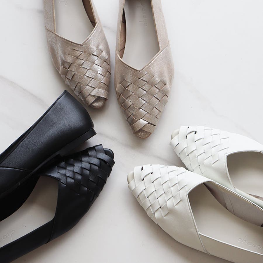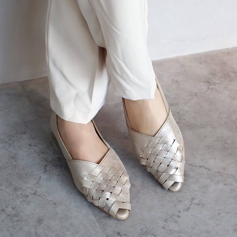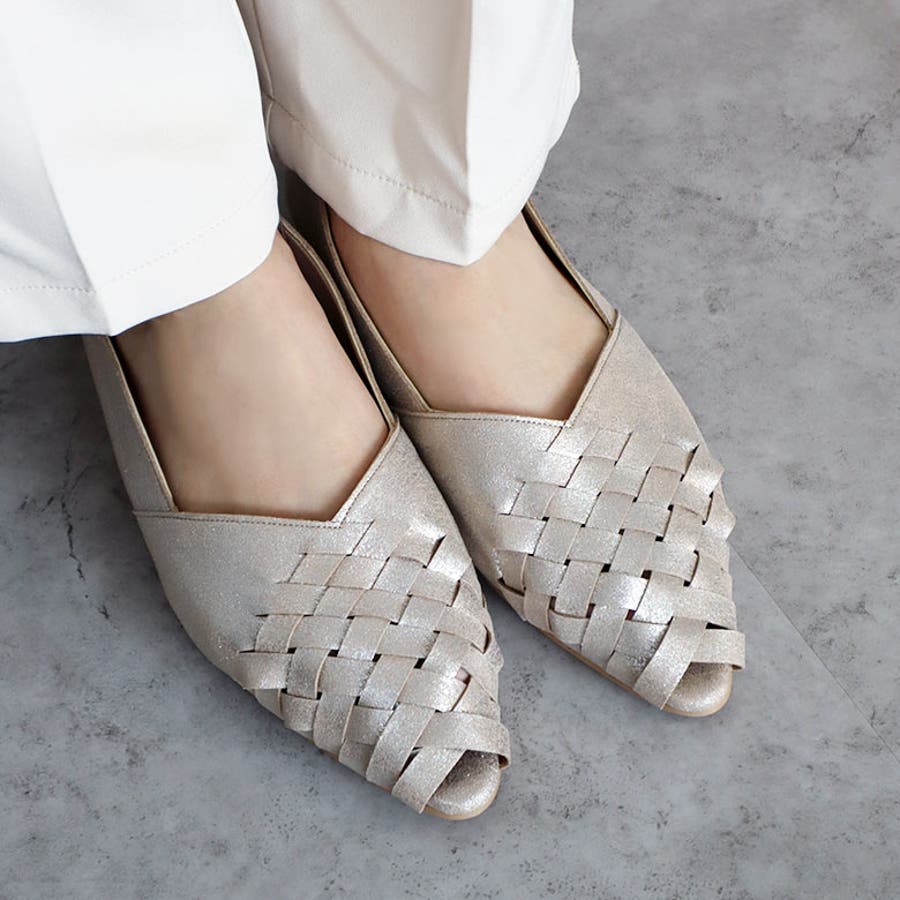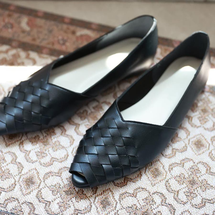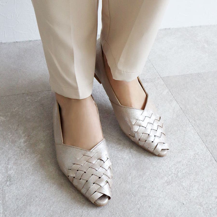 甲がメッシュ状に編み込まれたオープントゥパンプスです。
