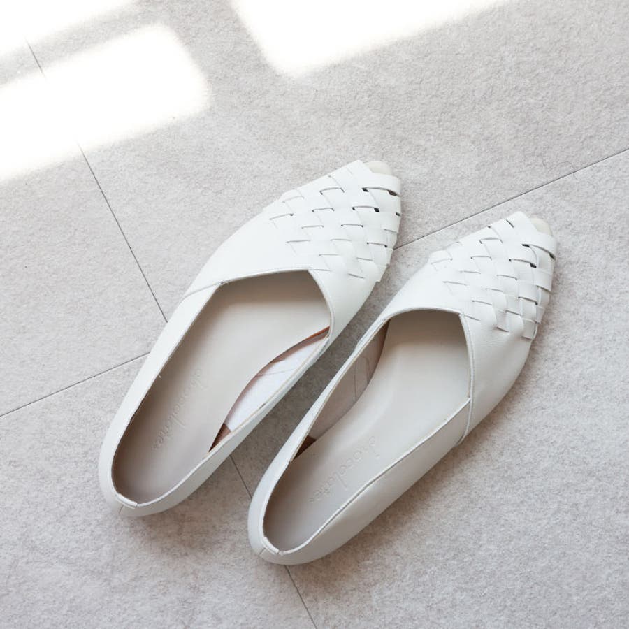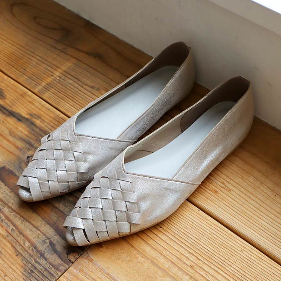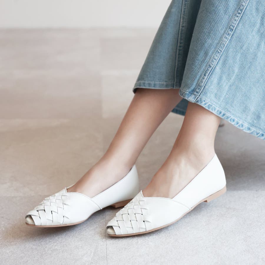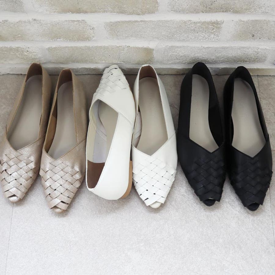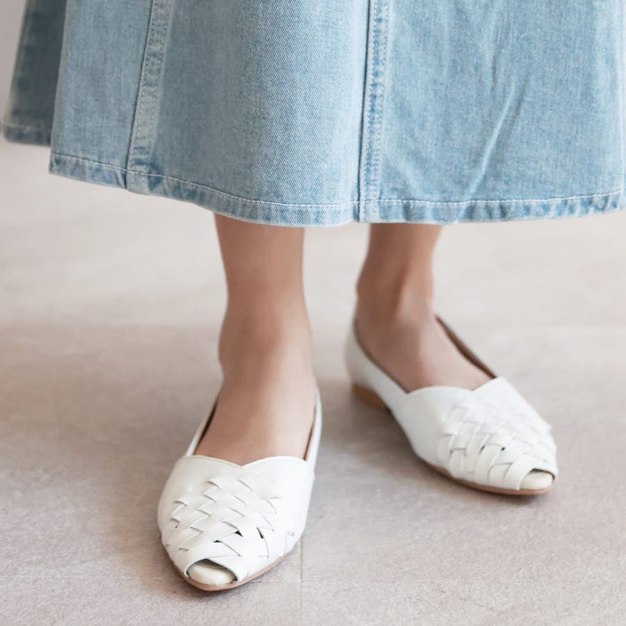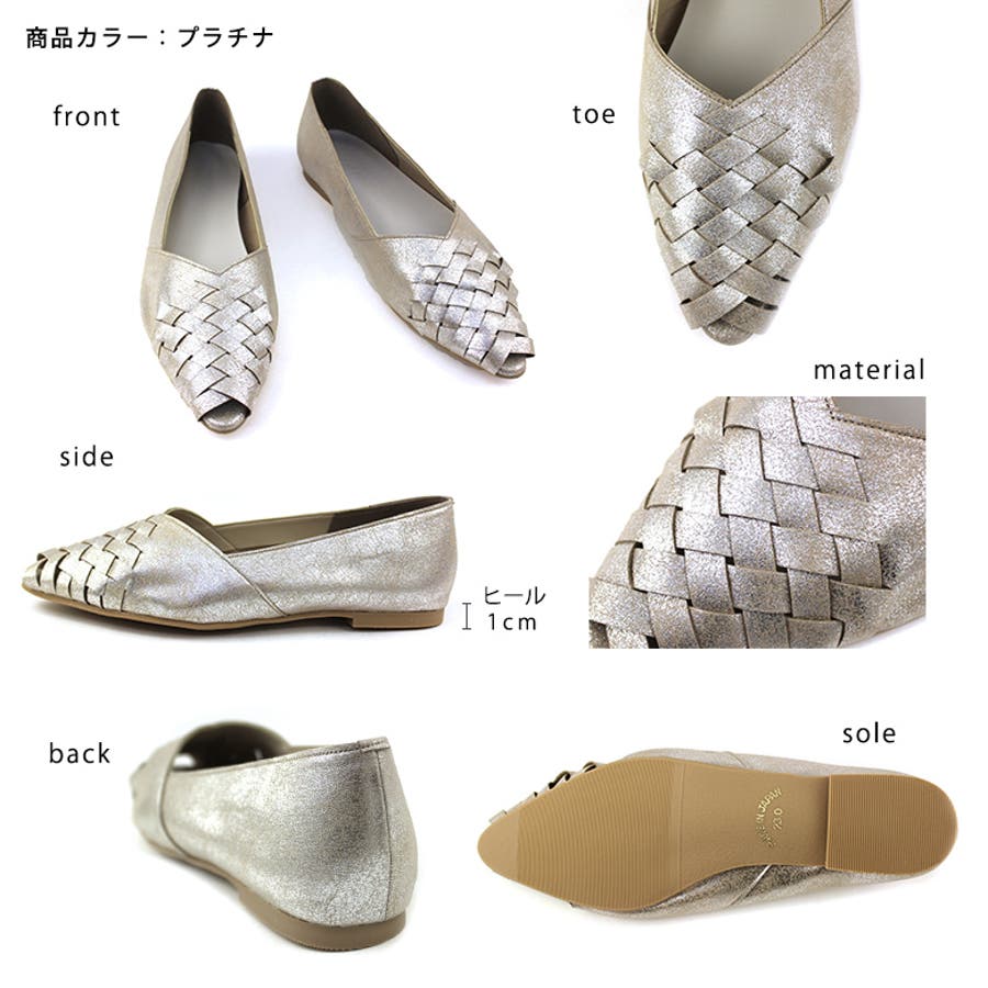 甲がメッシュ状に編み込まれたオープントゥパンプスです。