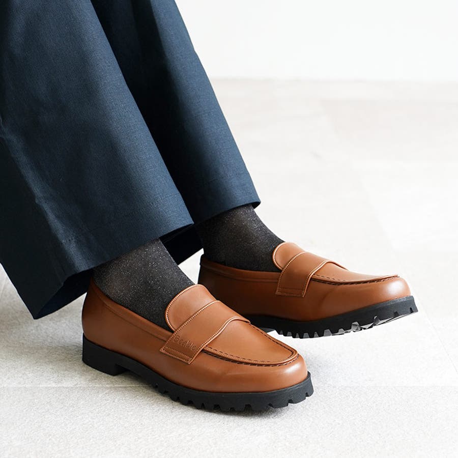 ベーシックなデザインが魅力なラウンドトゥのローファーです。