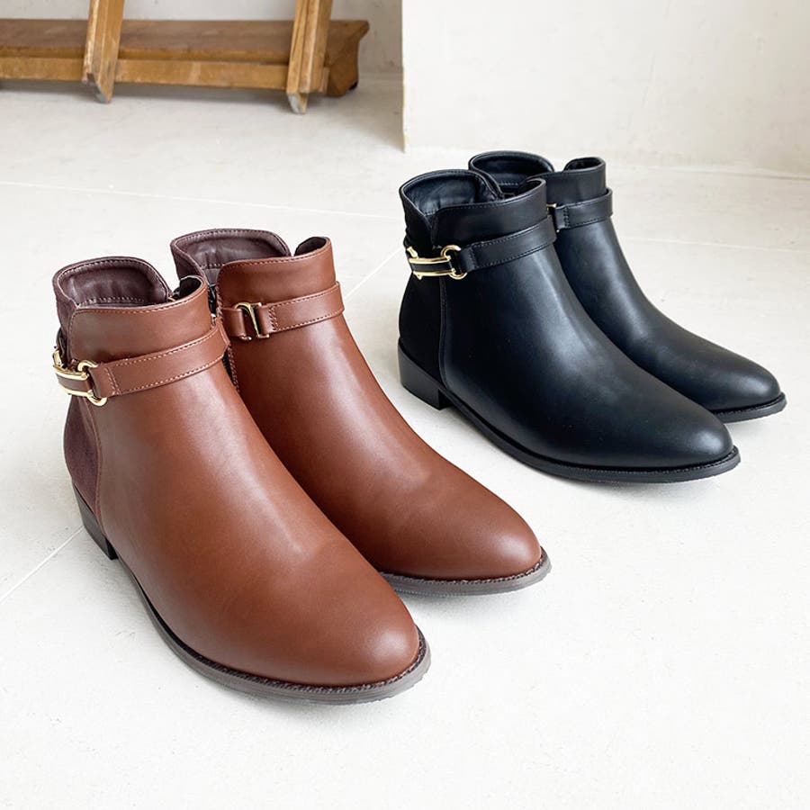 ラウンドトゥショートブーツ 3cmヒール シンプル