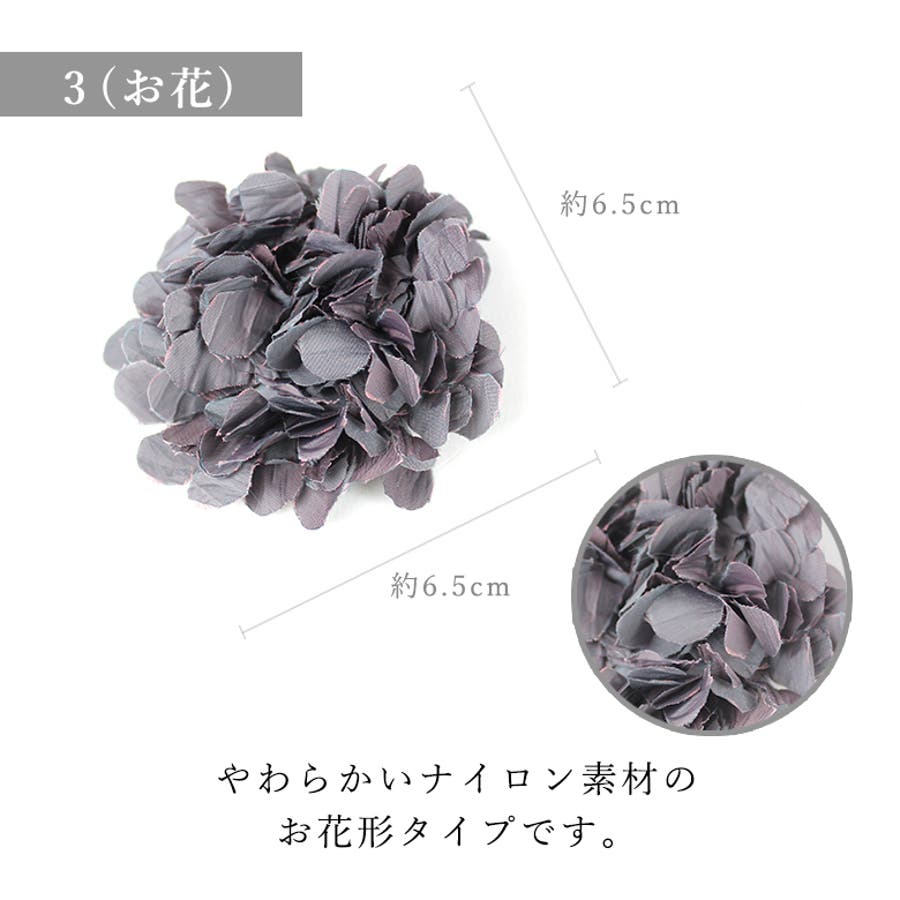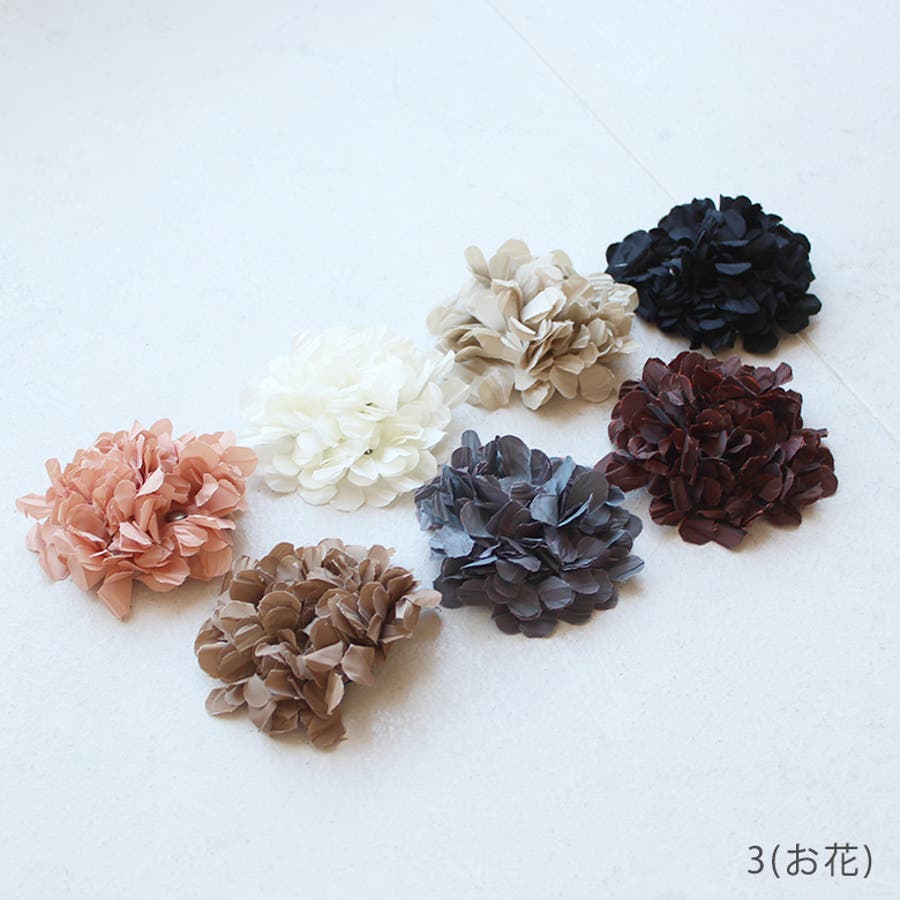 | カラー | 3(お花)-beige / 3(お花)-black / 3(お花)-brown / 3(お花)-pink / 3(お花)-purple / 3(お花)-white / 3(お花)-darkbrown / 5(リボン)-black / 5(リボン)-ivory / 5(リボン)-pink / 5(リボン)-silver / 5(リボン)-gold / 2(バラ)-silver / 2(バラ)-black / 3(お花)-brown2 |