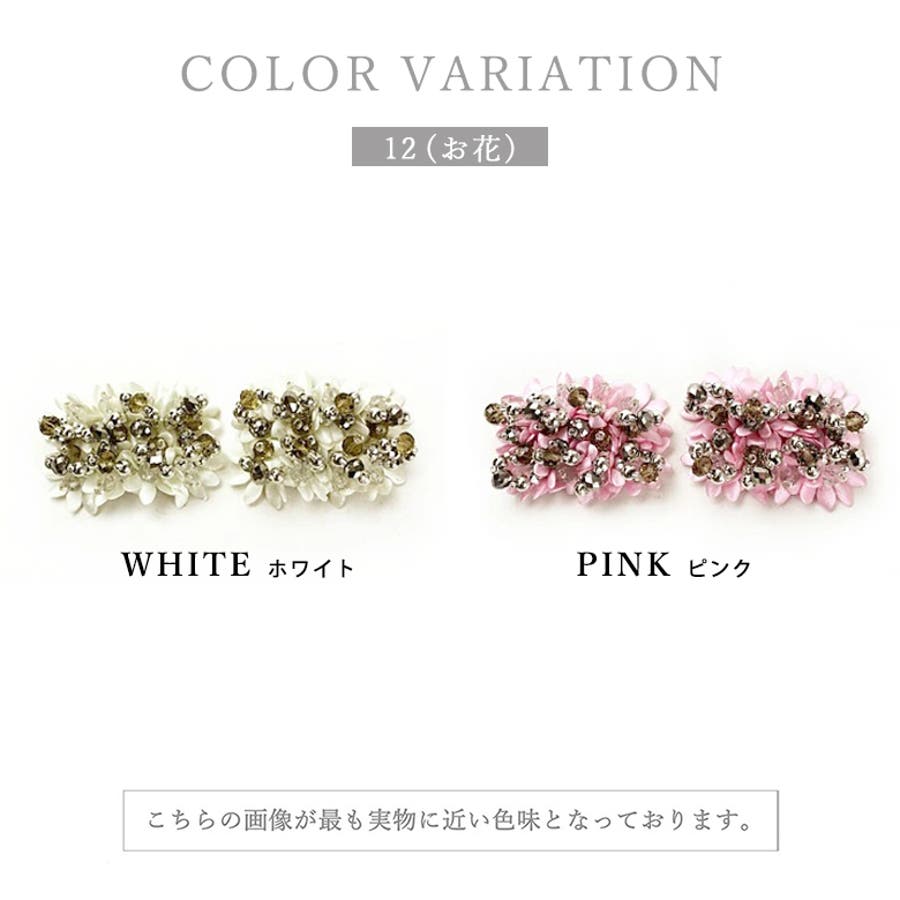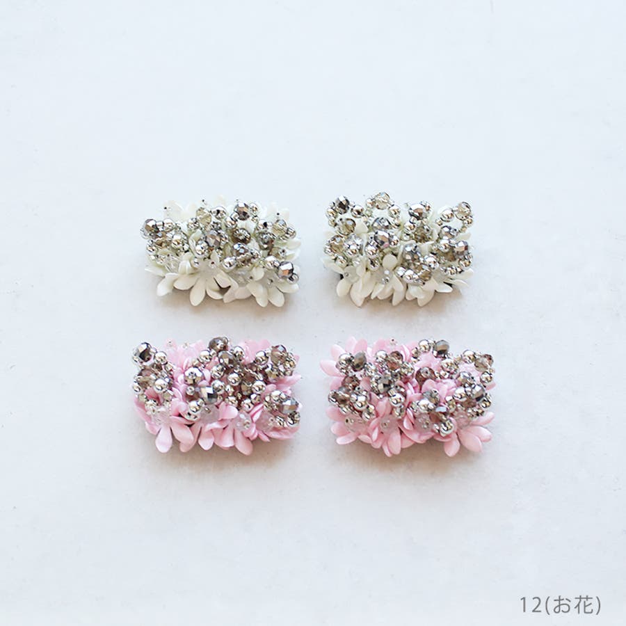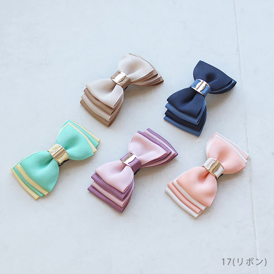 | カラー | 12(お花)-white / 12(お花)-brown / 12(お花)-gold / 12(お花)-pink / 15(リボン)-black / 15(リボン)-gray / 15(リボン)-beige / 15(リボン)-pink / 17(リボン)-black/beige / 17(リボン)-beige/brown / 17(リボン)-navy/blue / 17(リボン)-green/yellow / 17(リボン)-pink/ivory / 17(リボン)-pink/purple |