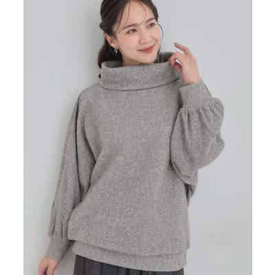 リブの凹凸感とゆったりとしたオフタートルなので、首回りがスッキリと見える印象に。