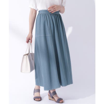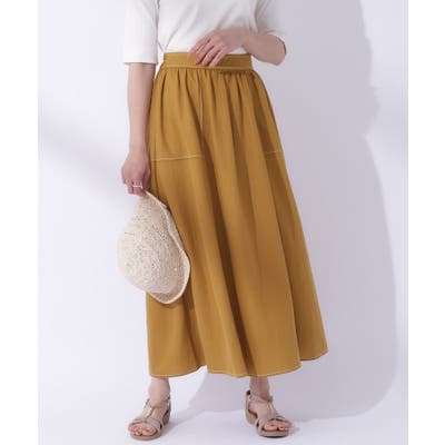 【UV】大人上品な 配色ステッチ フレアスカート