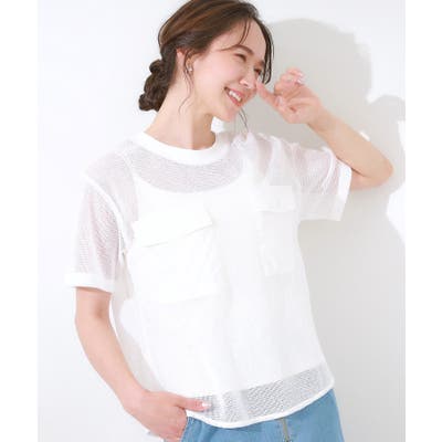 【S-LL】メッシュ素材で大人ヘルシー ポケット付きデザイントップス
