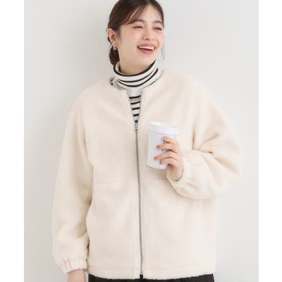 羽織るだけで着映えするノーカラーで着回しやすいボアジャケット。