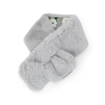 フラワー柄と無地のファーのリバーシブル使いができるファーティペットです。