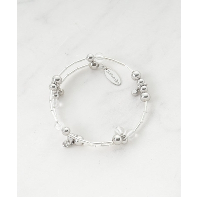 シンプルながらも華のあるデザインのメタルビーズとクリアビーズを使用したブレスレットは、一本で重ね付けしているようなスタイリッシュな見た目が魅力。