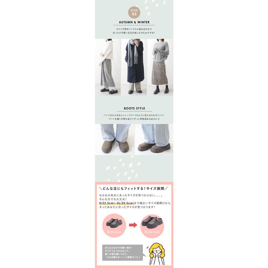 くるみさん Lサイズ 23.5cm・24.0cm 足長:23.5cm 足囲:22.5cm/ワイズ:D(細め) 足幅:9.3cm/弱内反小趾 甲の高さ:高め | 【靴下】 Lサイズ:全体的にちょうどいいです。 ★ベルト部分をかかとに移動させると雰囲気が変わり可愛いです。 |