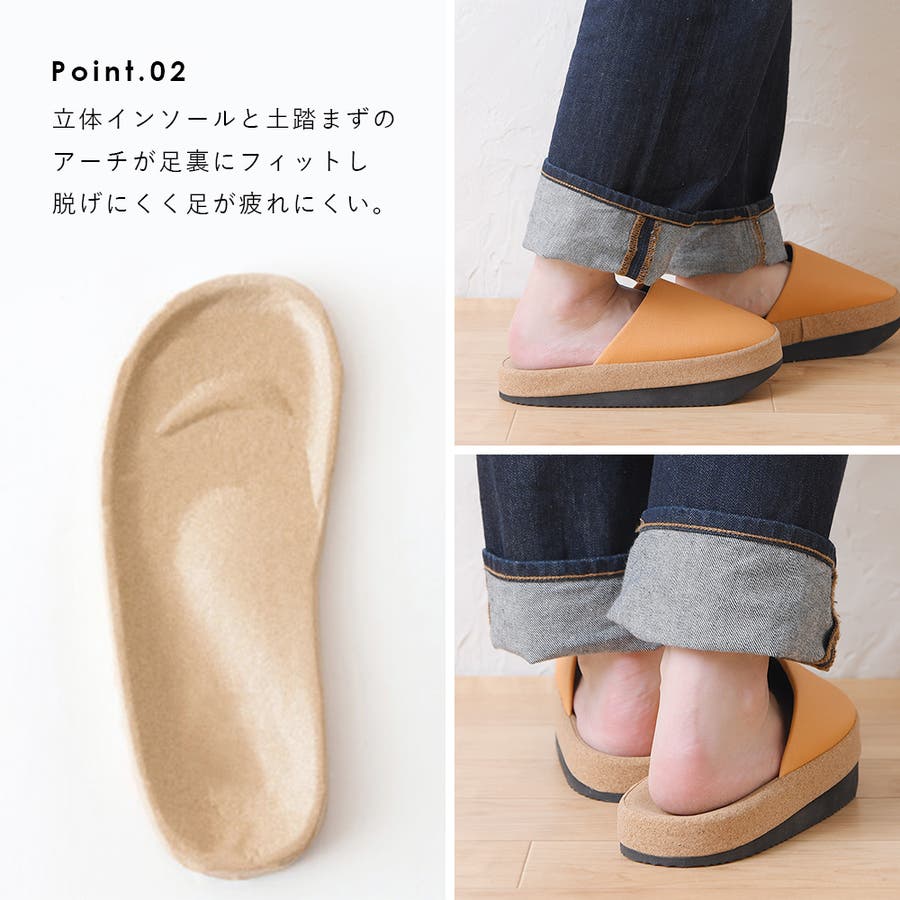 アーチが足裏にフィットし脱げにくく足が疲れにくい。
