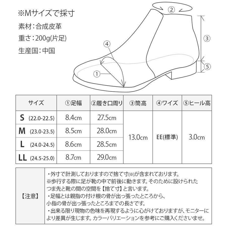 | サイズ | 足幅 | 履き口周り | 筒高 | ワイズ | ヒール高 |