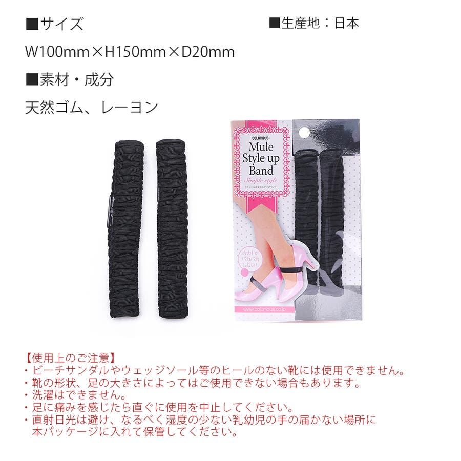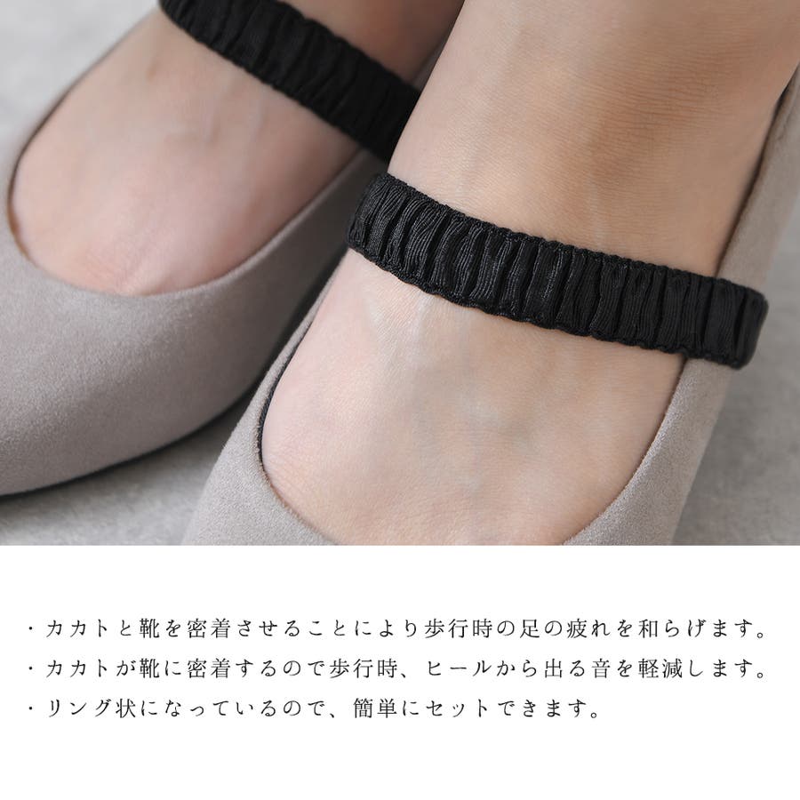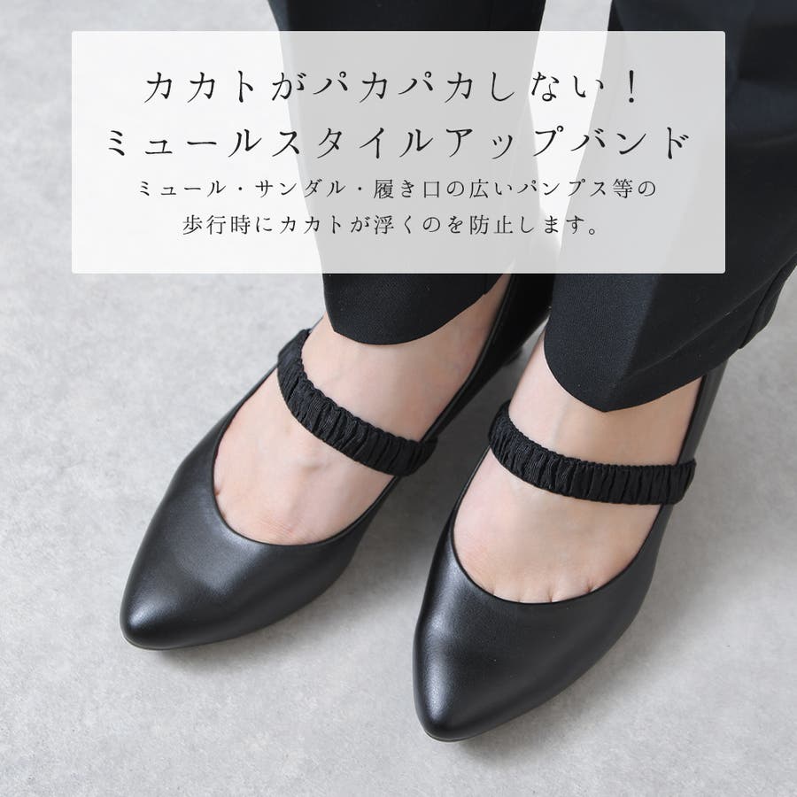 パンプス バンド ミュール シューズ ゴム ベルト サイズ調整 ヒール パカパカ防止 かかと浮き防止 靴ずれ防止 脱げ防止 ギャザー ブラック