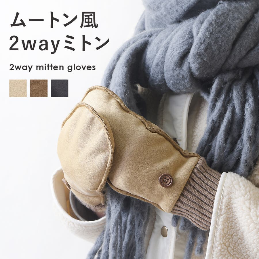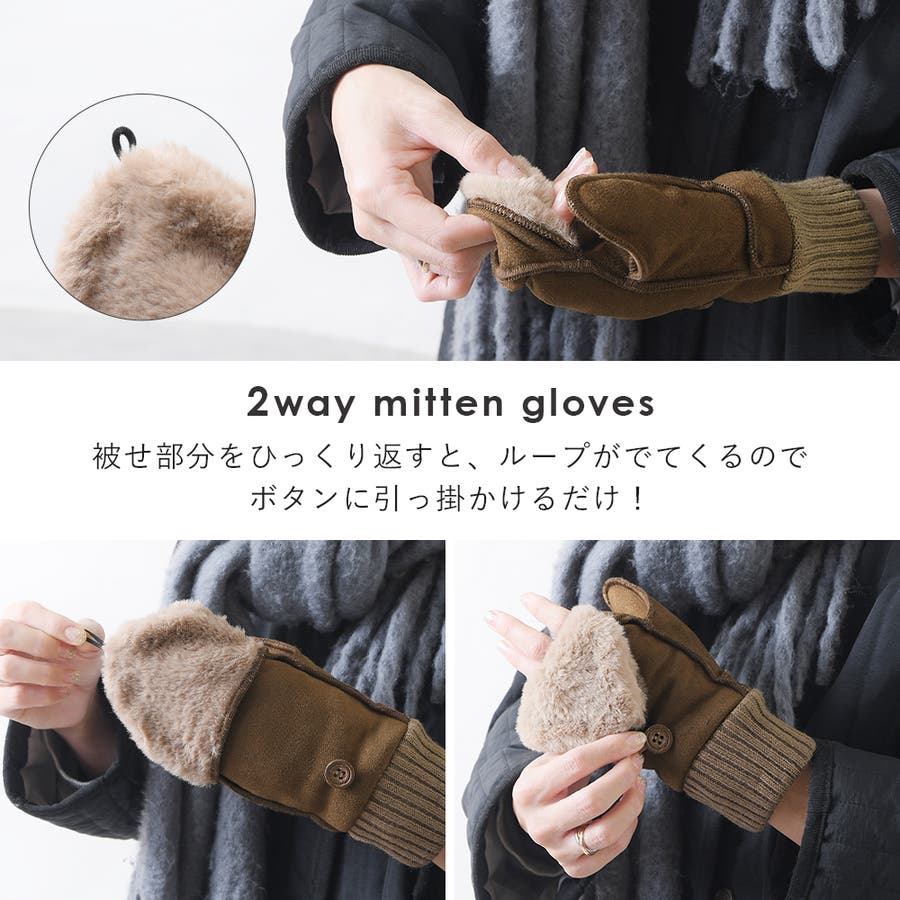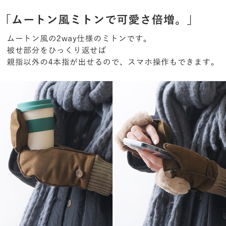 ムートン風の2way仕様のミトンです。