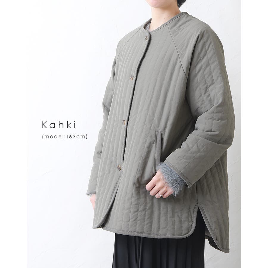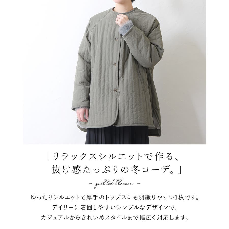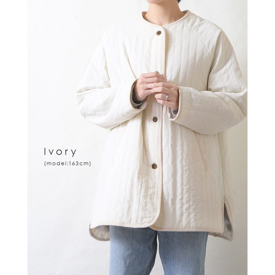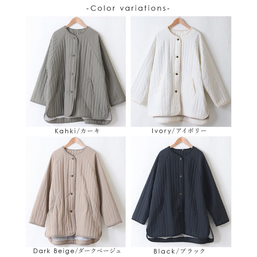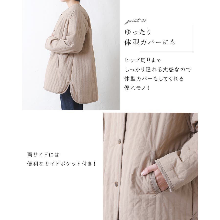 キルティングジャケット レディース キルティング ブルゾン コートキルティング キルトコート アウター ミドル丈 ノーカラー ゆったり オーバーサイズ 暖かい 防寒 可愛い ポケット付き おしゃれ カジュアル ベージュ カーキ アイボリー 白 黒 秋 冬 韓国