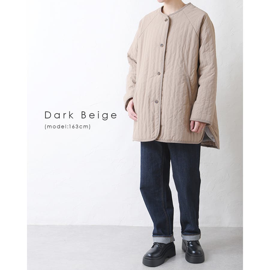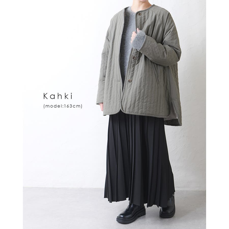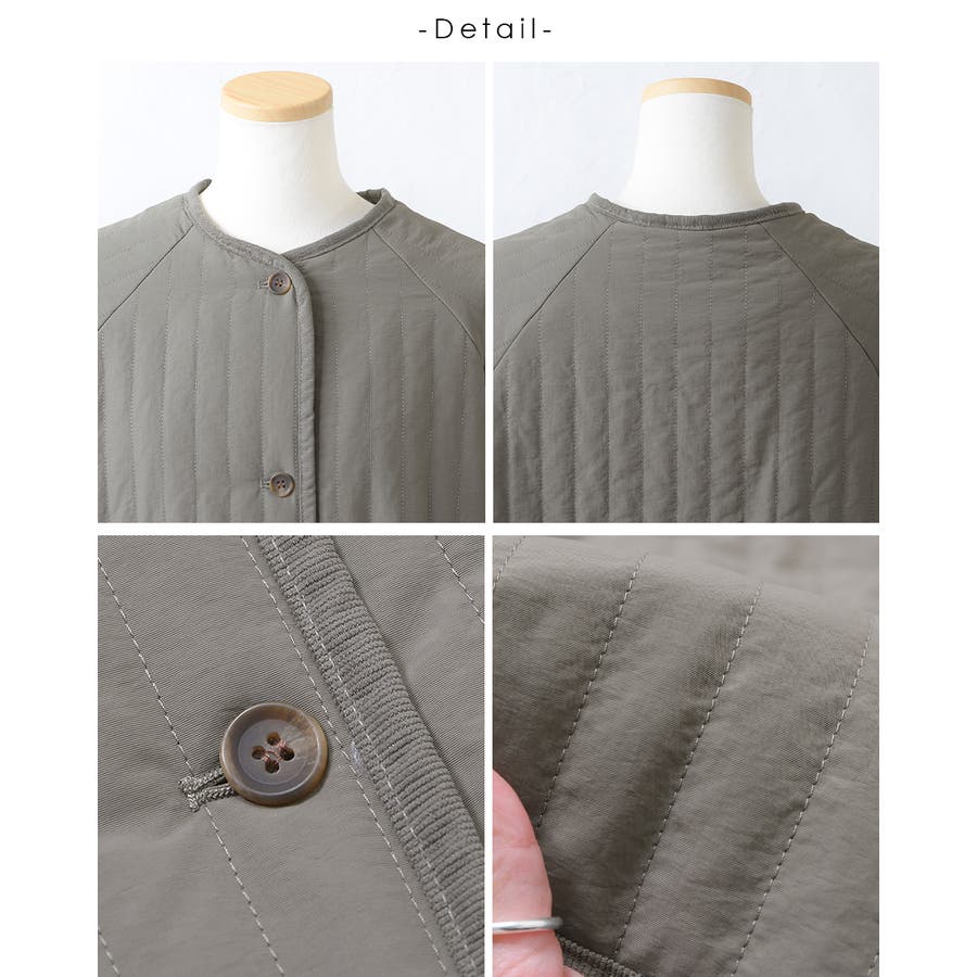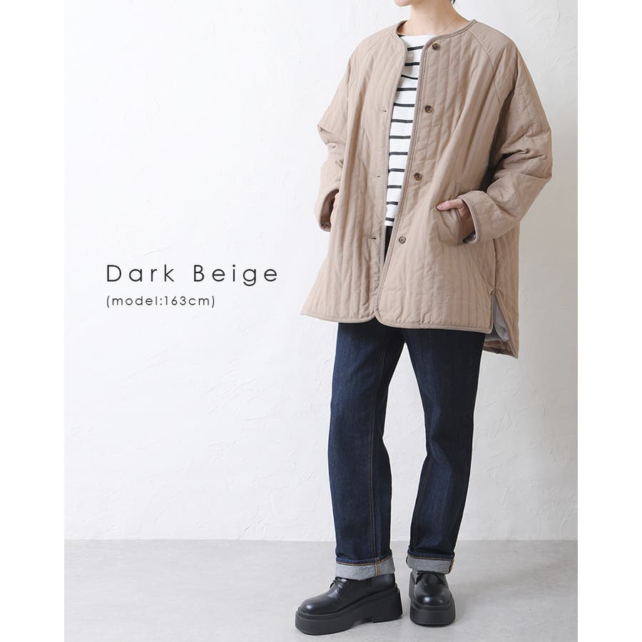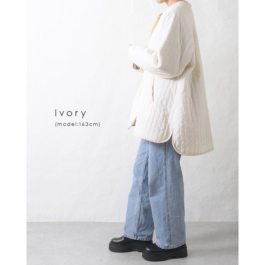 キルティングジャケット レディース キルティング ブルゾン コートキルティング キルトコート アウター ミドル丈 ノーカラー ゆったり オーバーサイズ 暖かい 防寒 可愛い ポケット付き おしゃれ カジュアル ベージュ カーキ アイボリー 白 黒 秋 冬 韓国