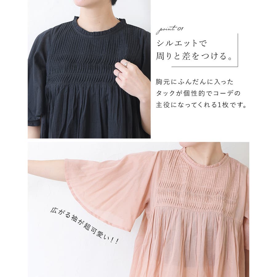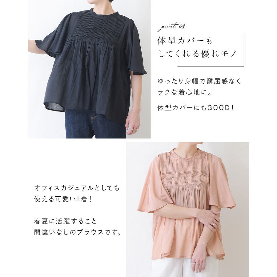 2024春新作 ブラウス レディース タック袖 タックブラウス トップス シアーブラウス シアー素材 シースルー フレア フレアブラウス 半袖 ゆったり おしゃれ 体型カバー ナチュラル オフィス 仕事 お仕事 ブルー 青 アイボリー 白 ホワイト ピンク 黒 春 夏