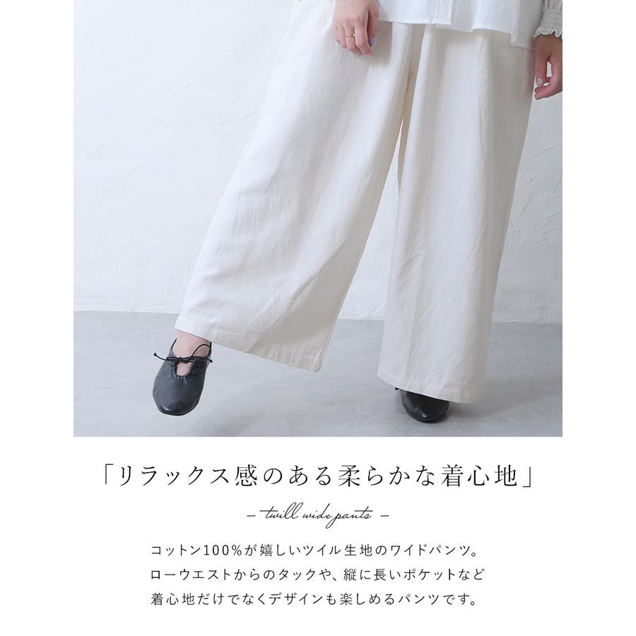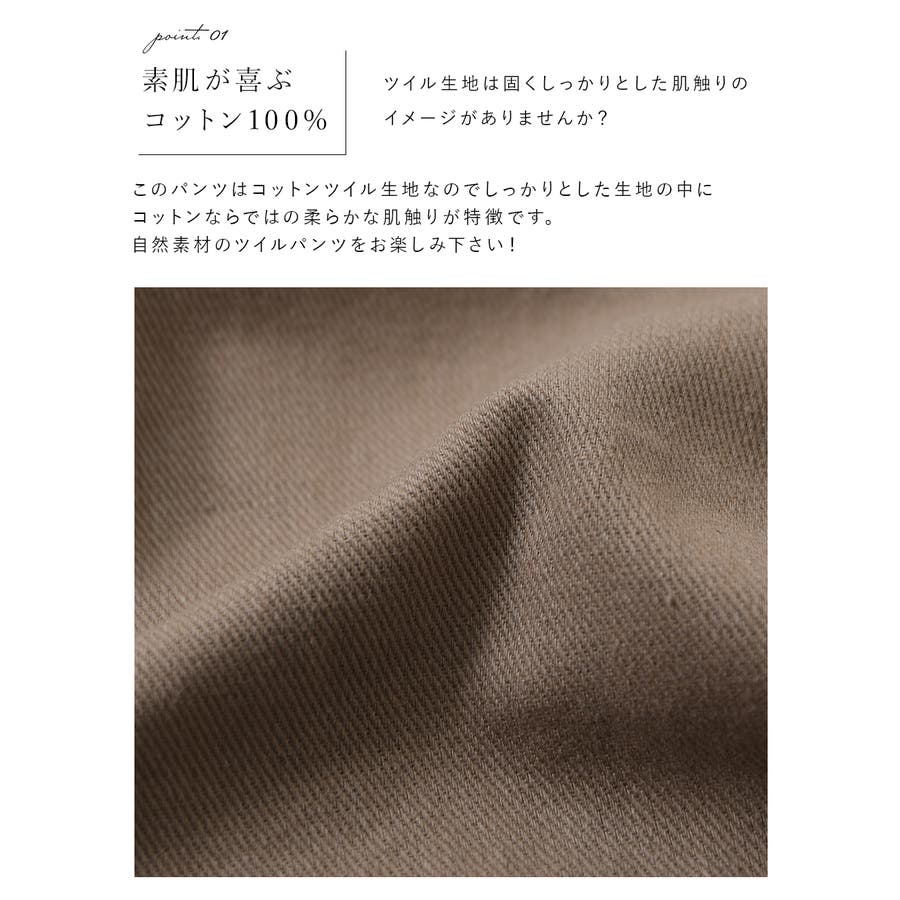コットン100%が嬉しいツイル生地のワイドパンツ。