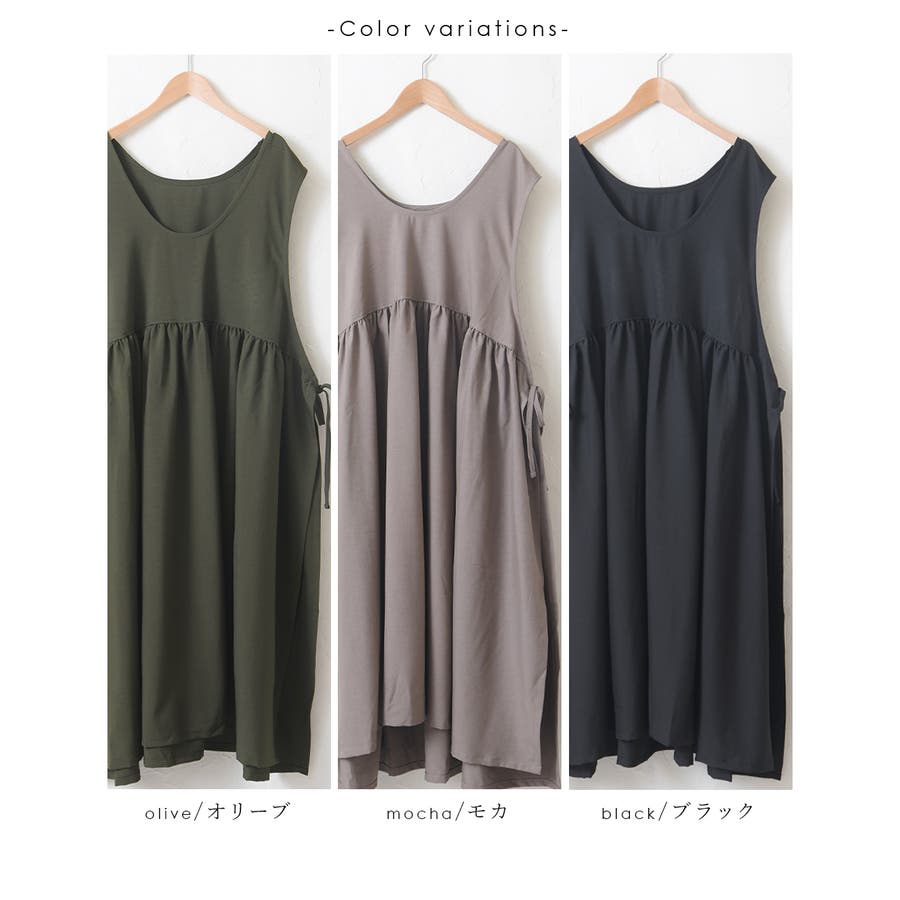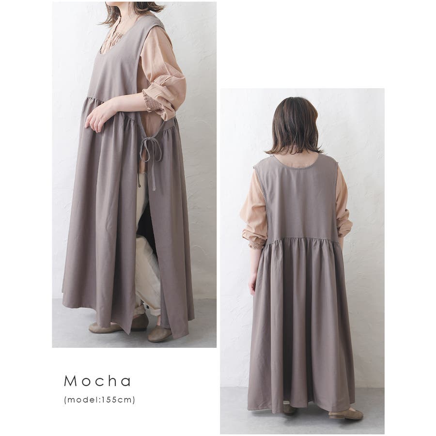 2023秋新作 ワンピース レディース レイヤード 重ね着 レイヤードワンピース サイドリボン ロング ロングワンピース ゆったり ナチュラル カジュアル ロング丈 マキシ丈 体型カバー 無地 黒 ブラック オリーブ モカ 秋 冬