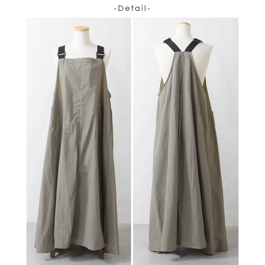 ジャンパースカート レディース ナイロン シャカシャカ サスペンダー付き 肩 ベルト 調節可 ワンピース サロペットスカート ロングスカート ロングワンピース ロング丈 マキシ丈 体型カバー カジュアル ゆったり ナチュラル 大人 春 夏